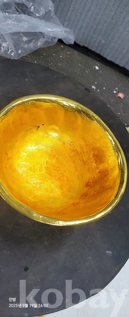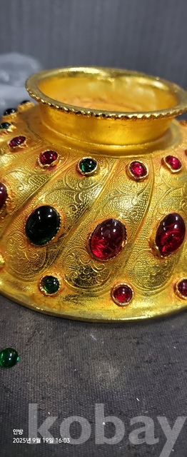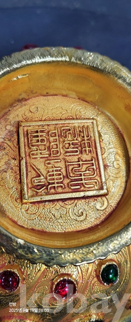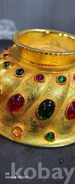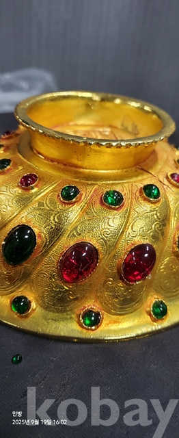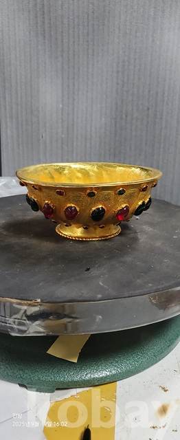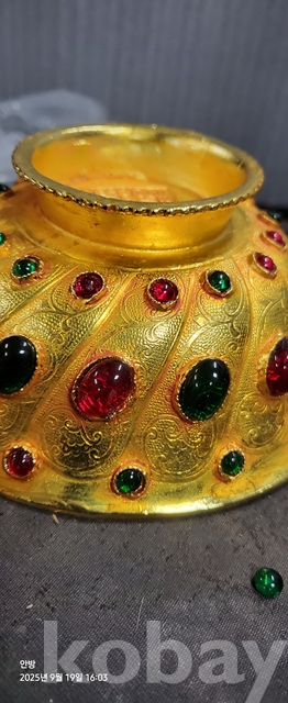 w-105.무게감있는 금도금 보석박힌찻사발