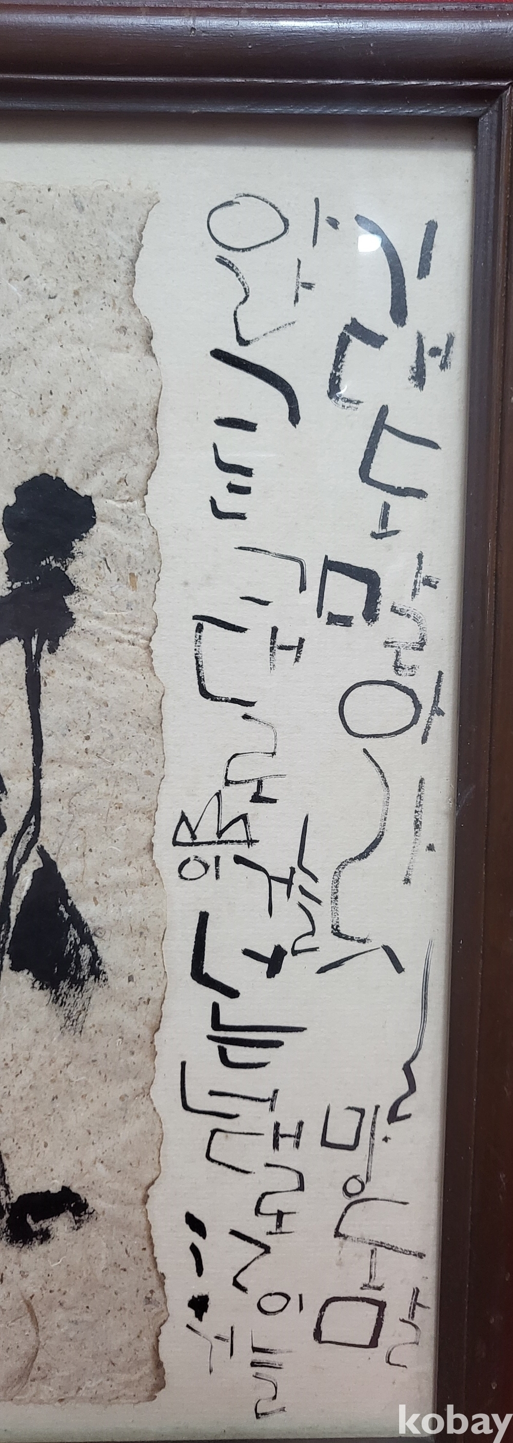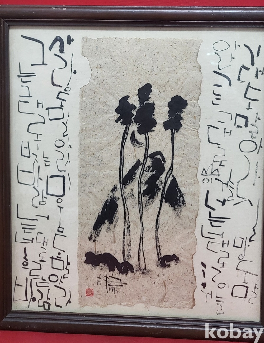 한지에 수묵화를 그리고 좌우에 시를 쓴 작품입니다,