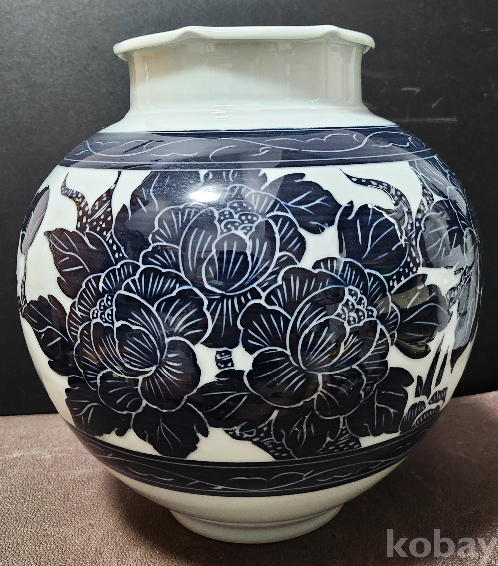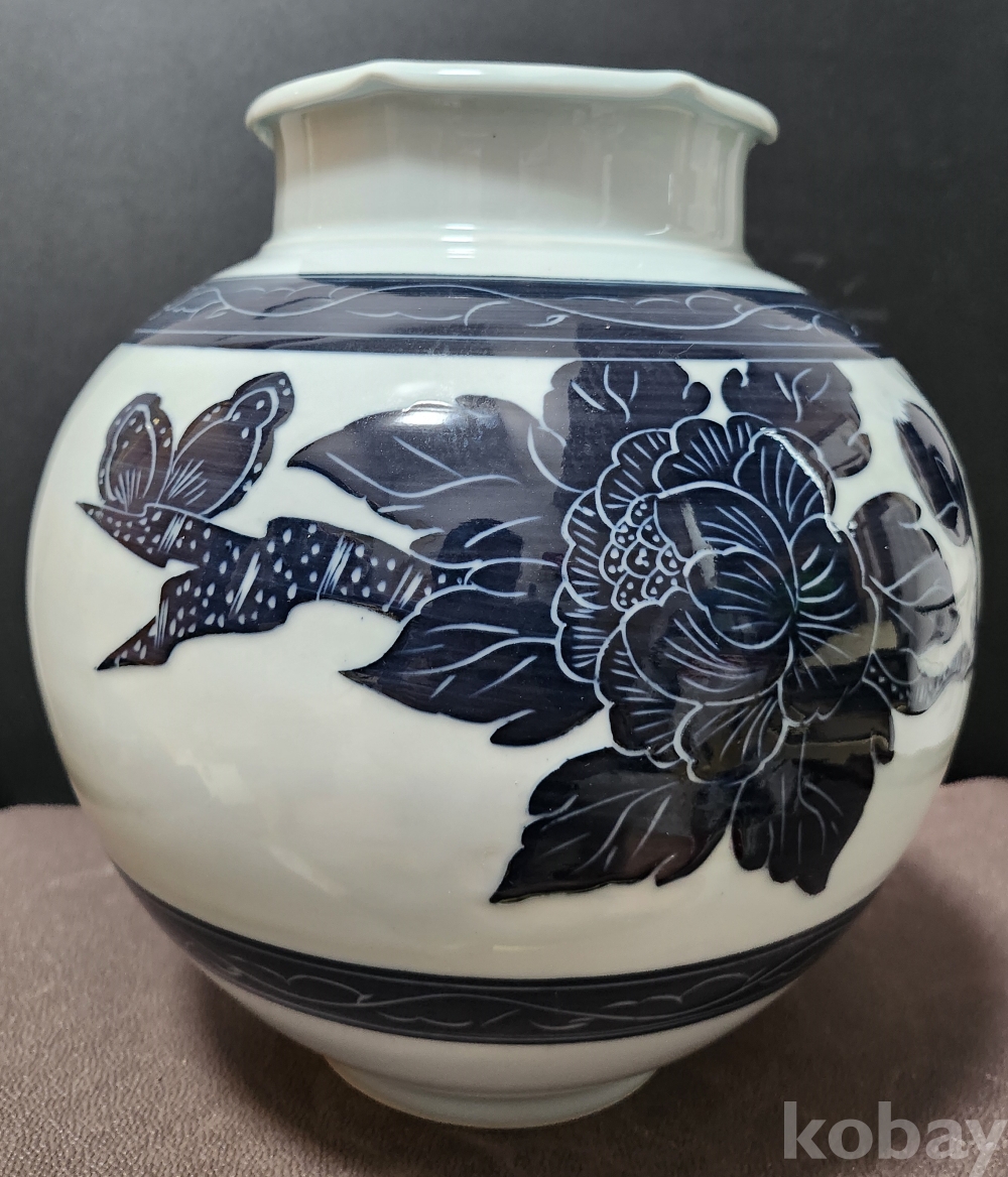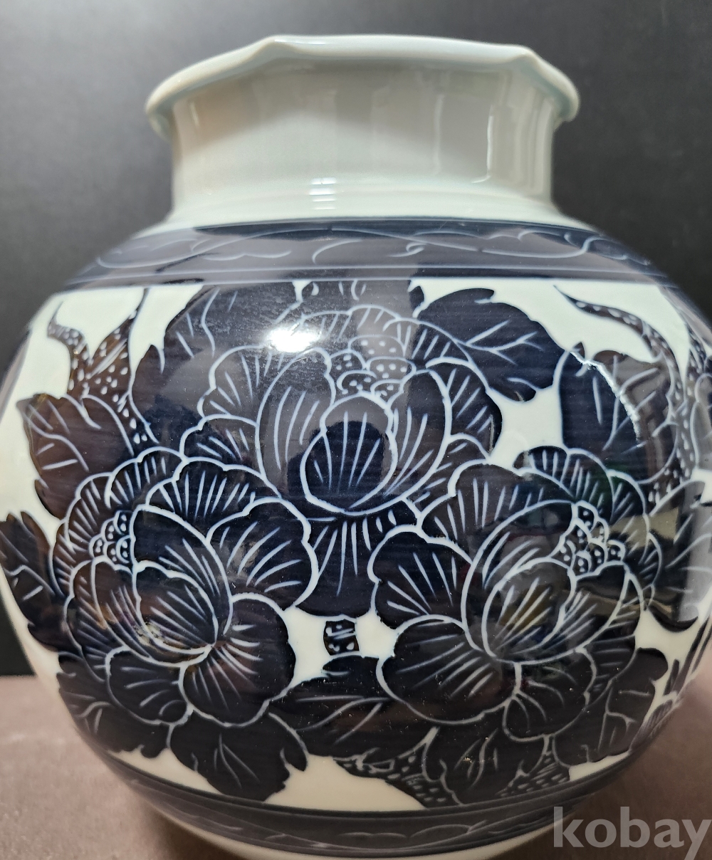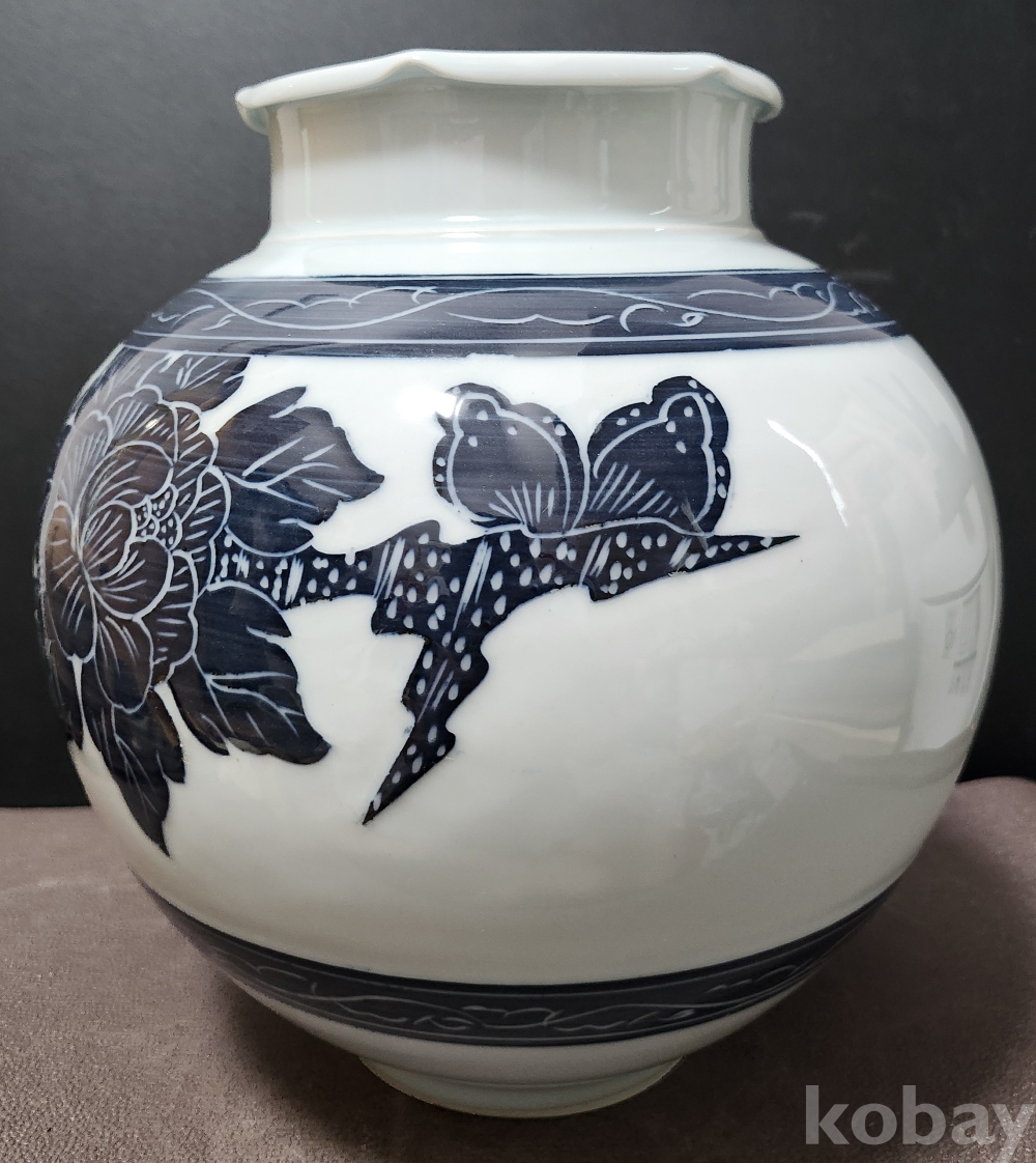 금강요 金綱窯 백자청화모란문호 白磁靑華牡丹紋壺