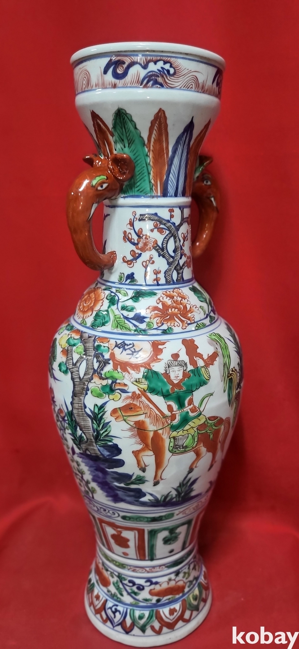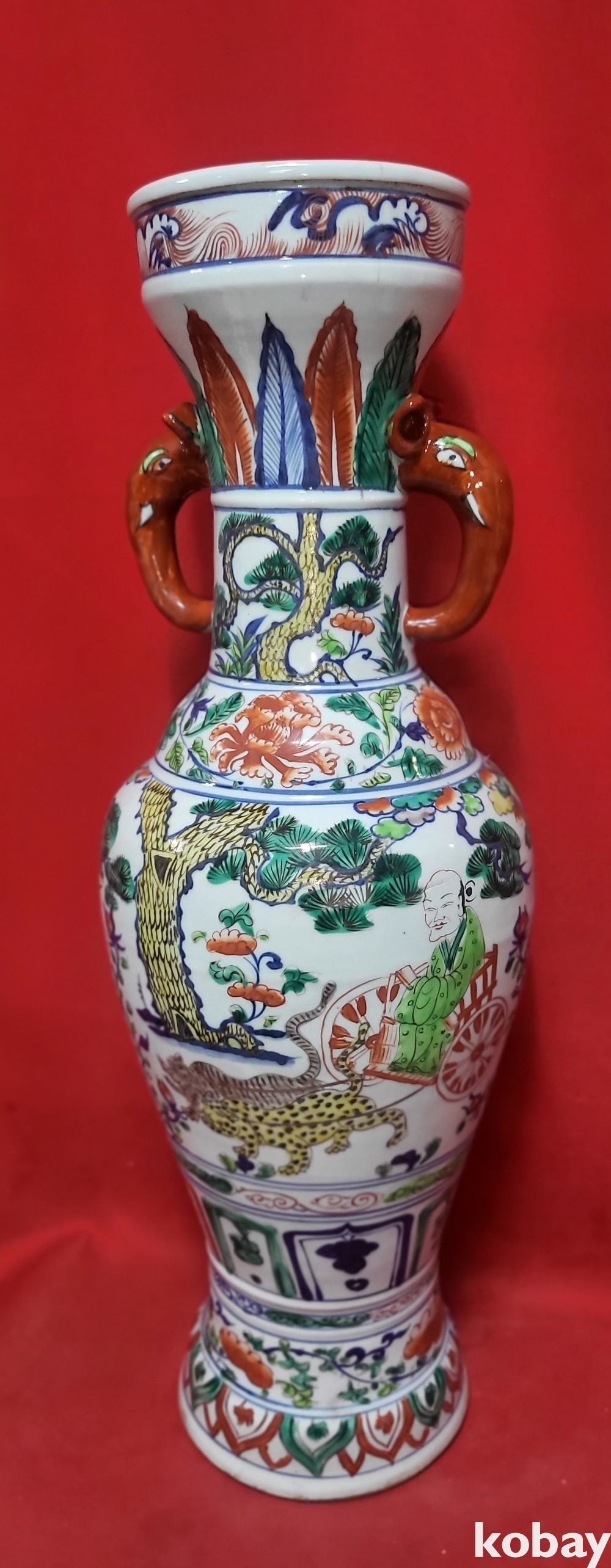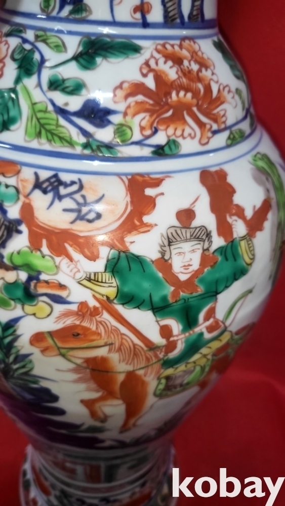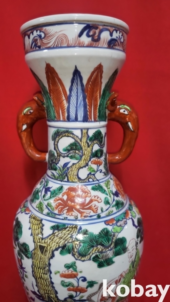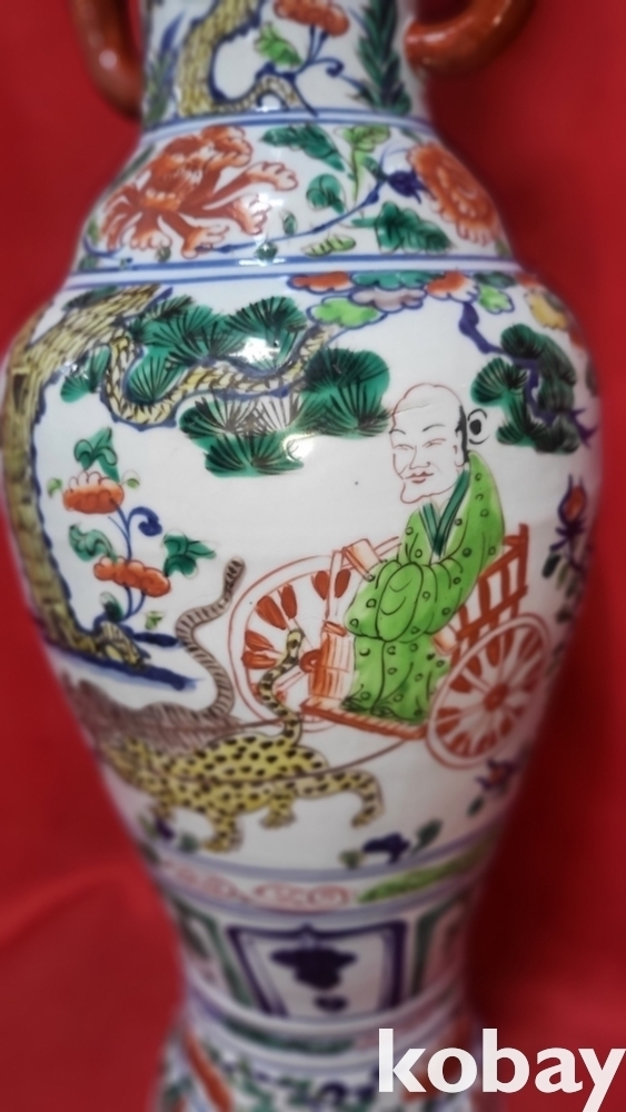 대원국 지정8년 추월길일 장문진 조 관지 청화유리홍 귀곡자하산도 문양 상이(象耳) 대항(大樽) 입니다,