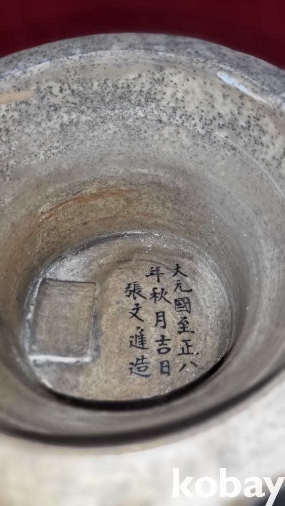 굽에는 대원국 지정8년 추월길일 장문진 조라는 관지가 보임니다,