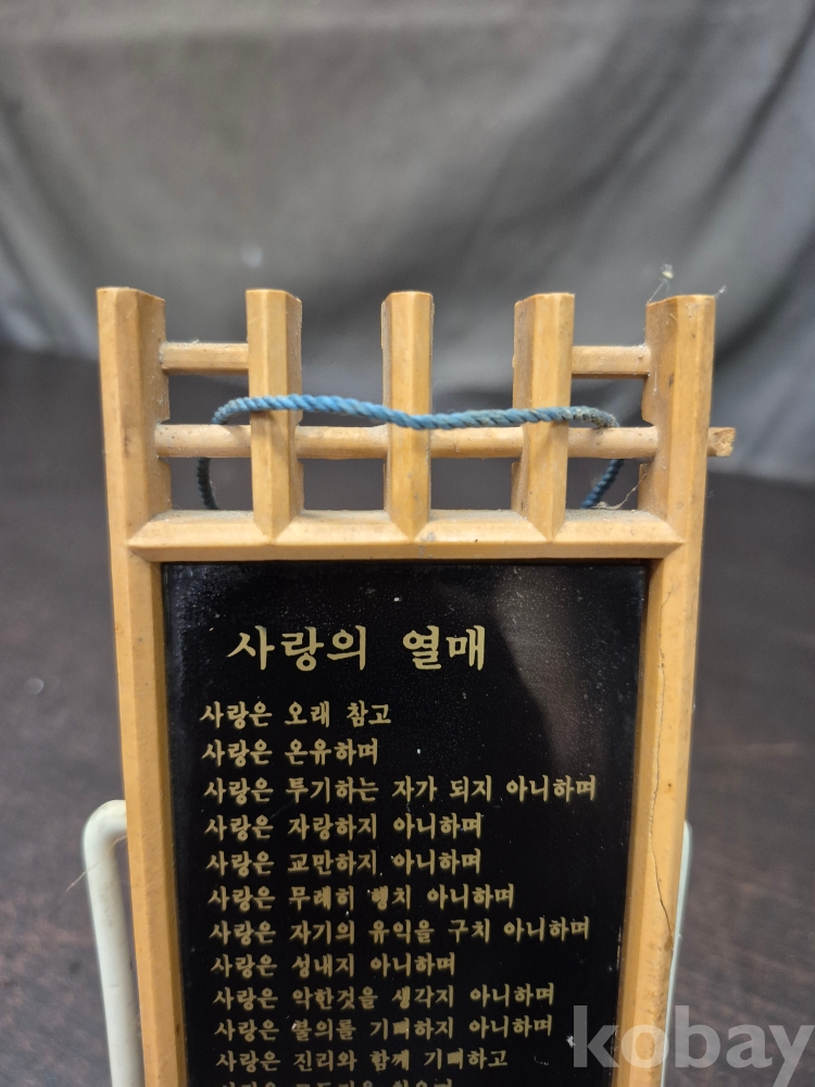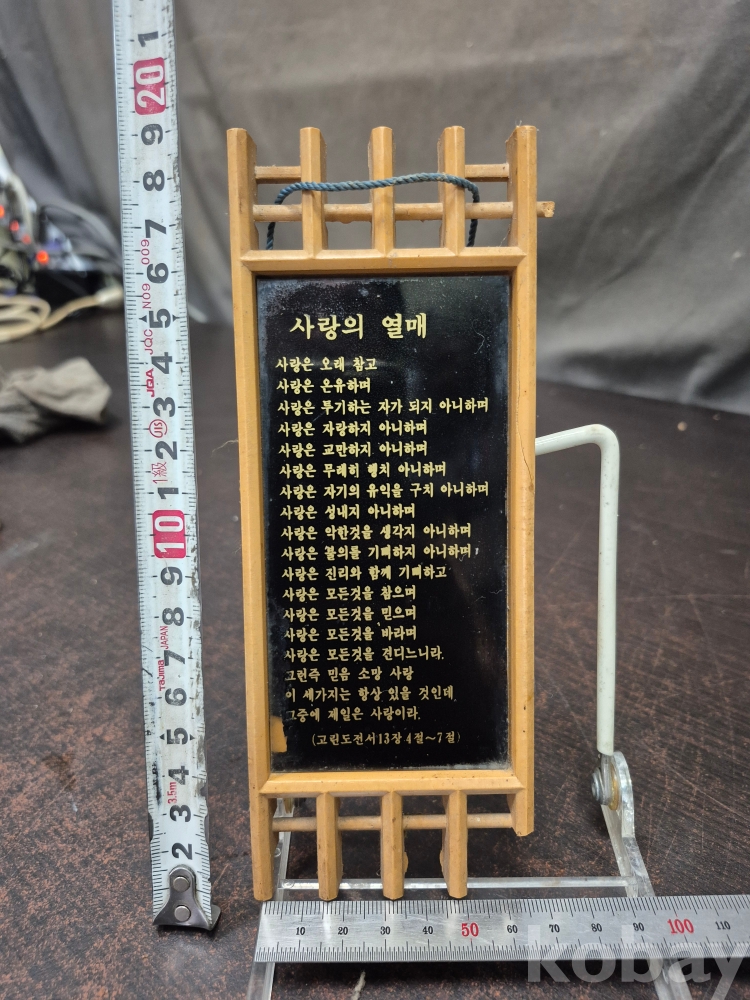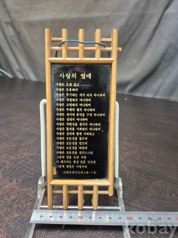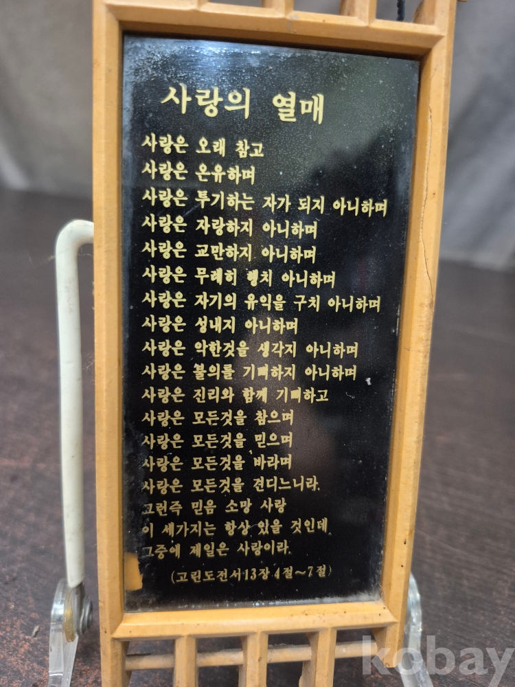 1970-80년대 소형 벽걸이형 소품 유리에 인쇄된 사랑의 열매 고린도 전서 13장 4절~7절 재질 플라스틱과 유리 7*1*21 플라스틱 밑부분 1부분 깨짐 있어요