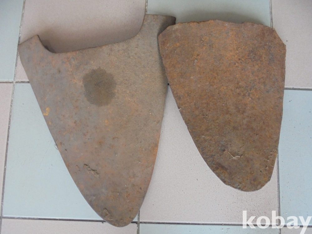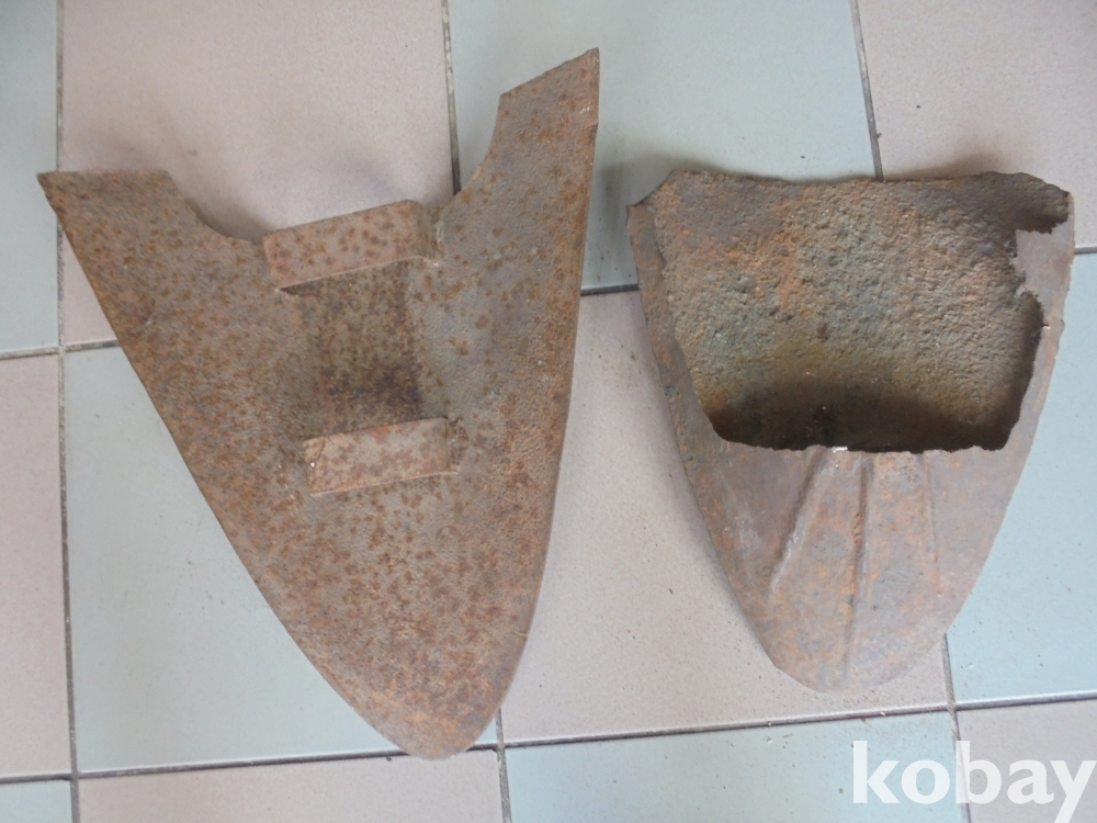 소가 밭갈때 사용하던 나무는 없어지고 무쇠로만든 크고작은 흑쟁이 2점 큰것 가로세로높이 38 x 45 x 7 cm