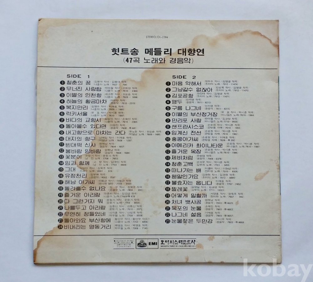 EX : 약간의 마모, 모서리 찢김 존재 음반상태