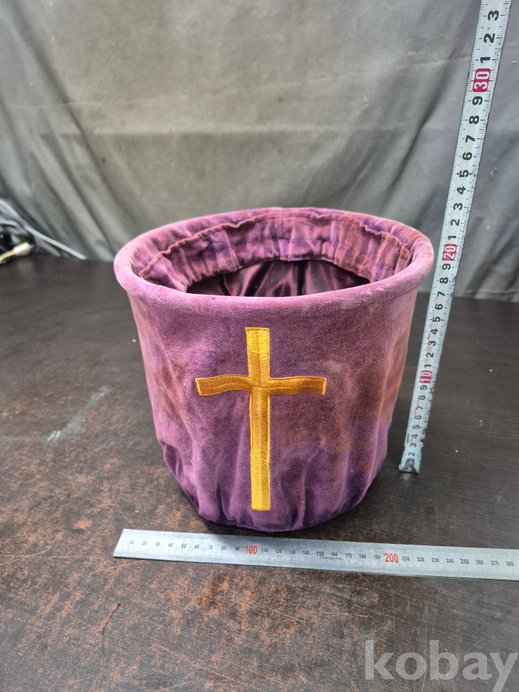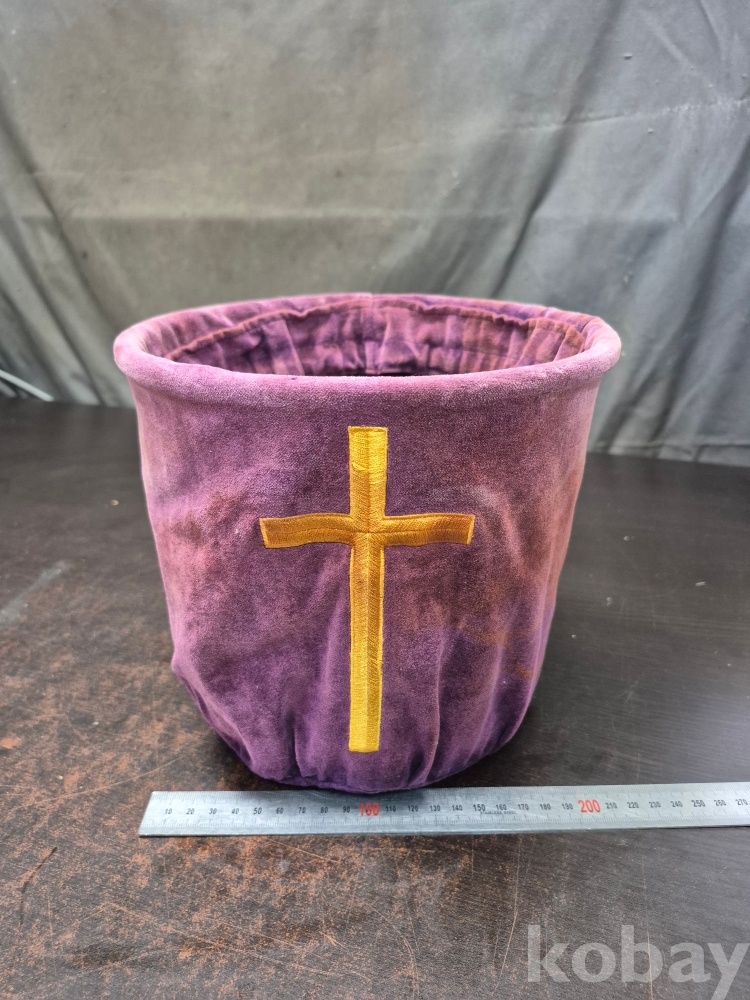 1980년 실사용하던 교회에서 사용하던 헌금 바구니 재질 바구니에 벨벳소재 천 22*22*20