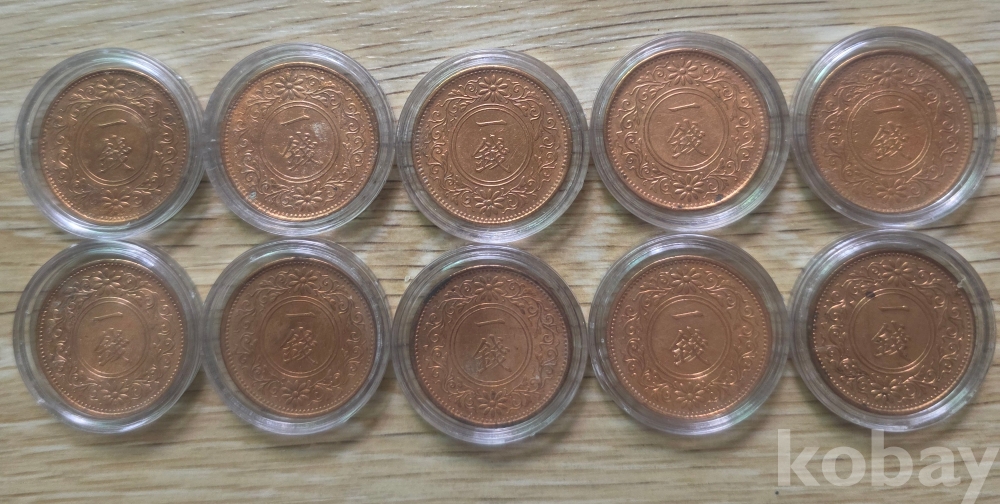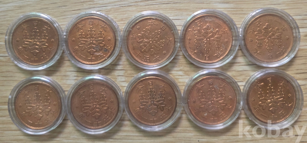 일본 대정11년 (1922년) 일전 청동화 미사용 10점 일괄