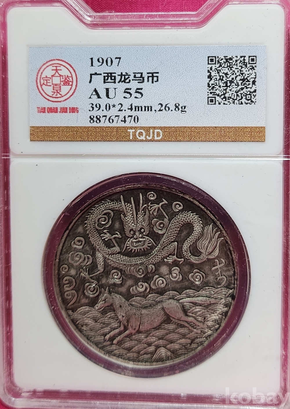 1907년 큐알코드(QR CODE)가 함께하는 은색 광서은폐 (光緖銀幣) 화패로 밀봉된 상태입니다,