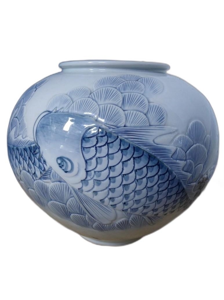 물고기 문양이 양각으로 있는 도자기 입니다.