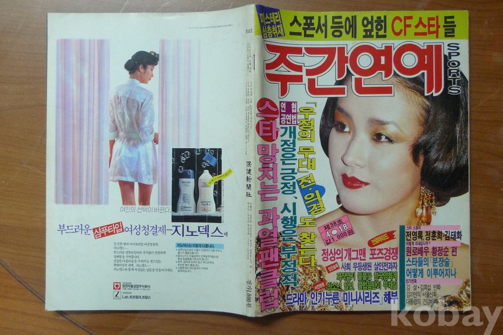 1990년 주간연예 스포츠 잡지 - 표지모델 영화배우 강수연 -