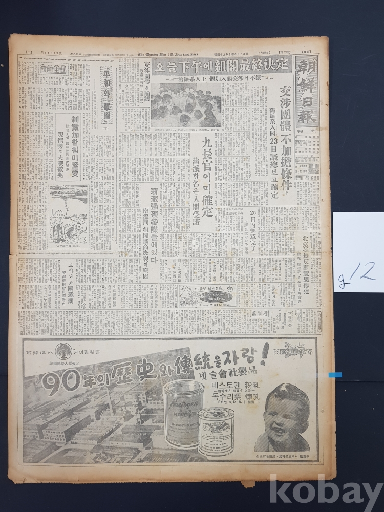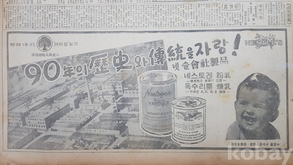 **** 조선일보/1960년 8월 23일/4면*유한양행 넷슬분유 광고포함