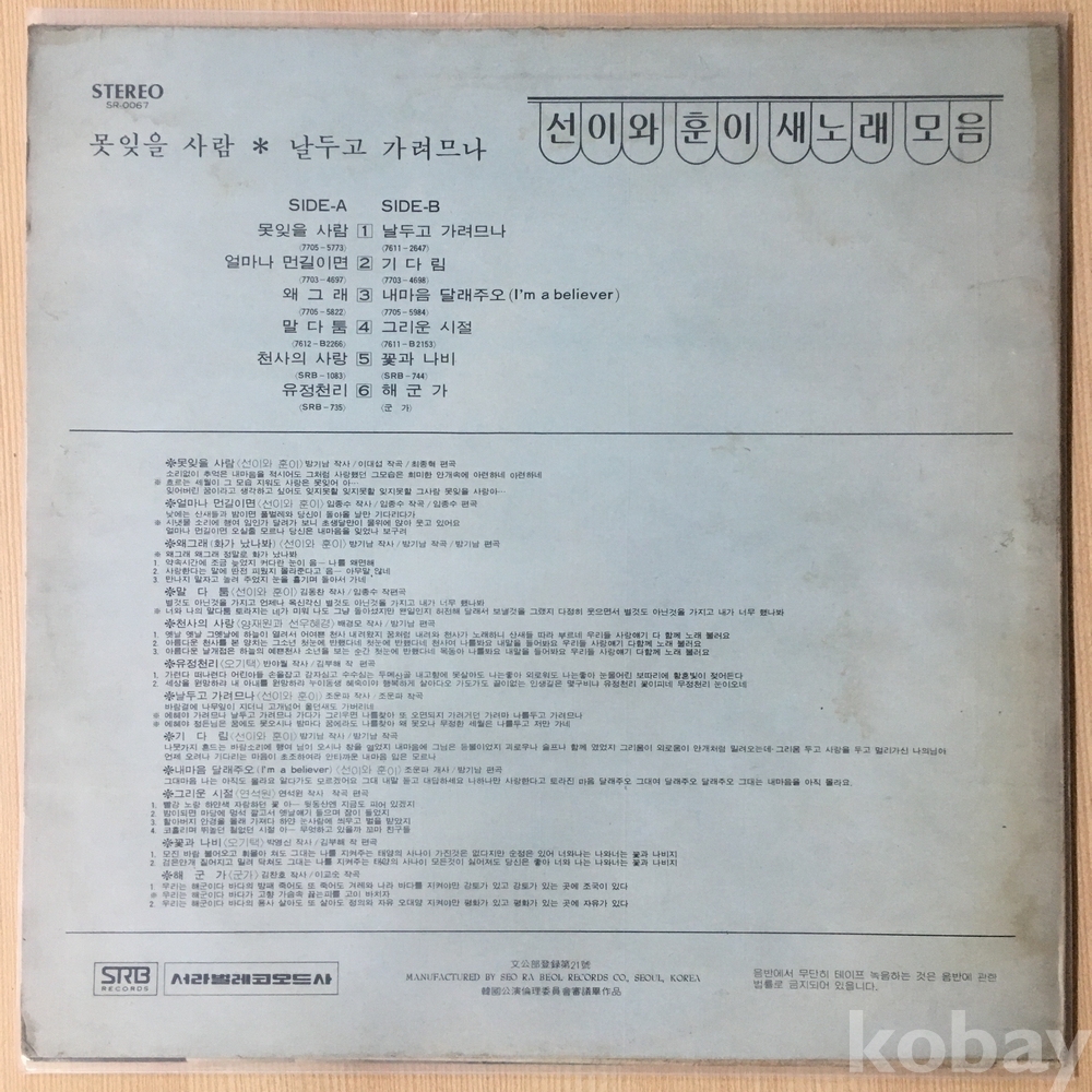 . 가요음반 대부분은 휘어짐이나 손상을 방지하기 위해 무지싱글자킷을 하나 더 사용하여 보관되었던 음반들입니다.