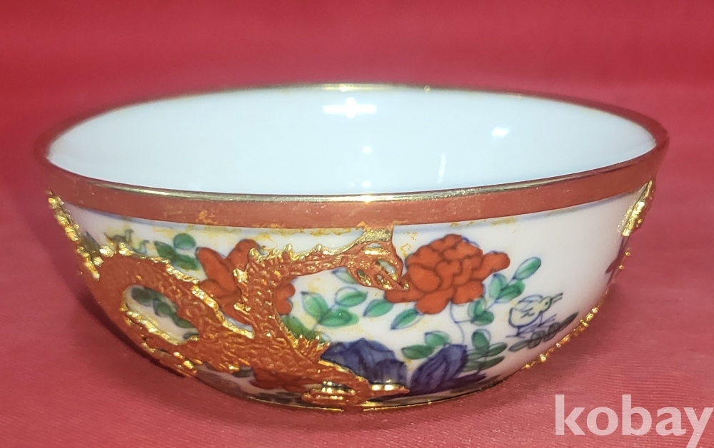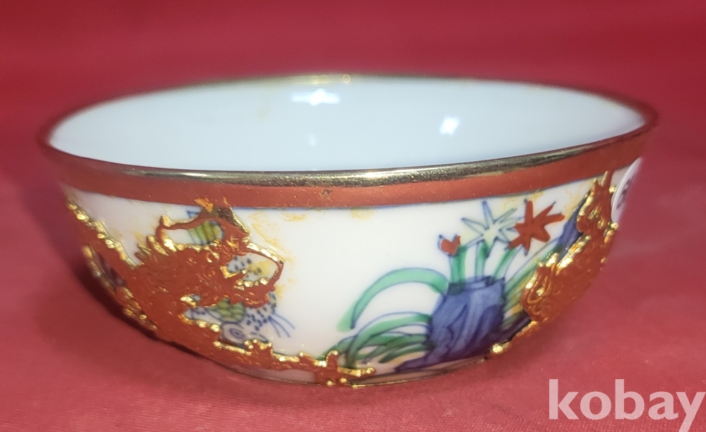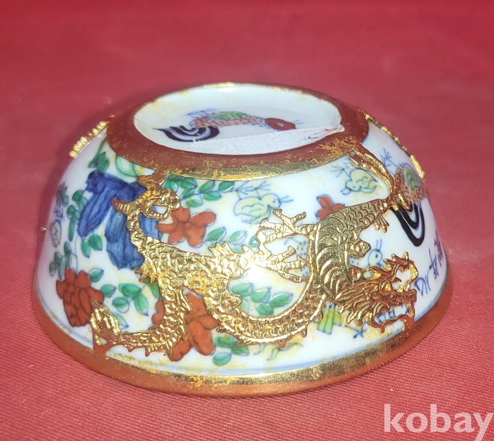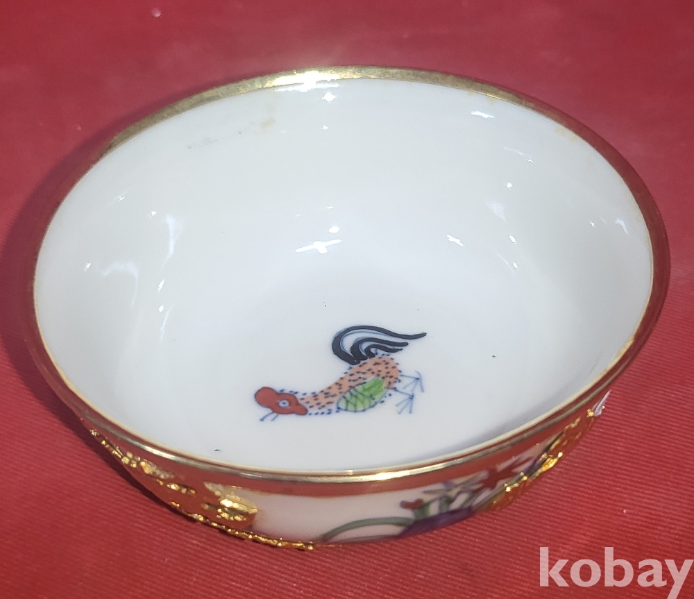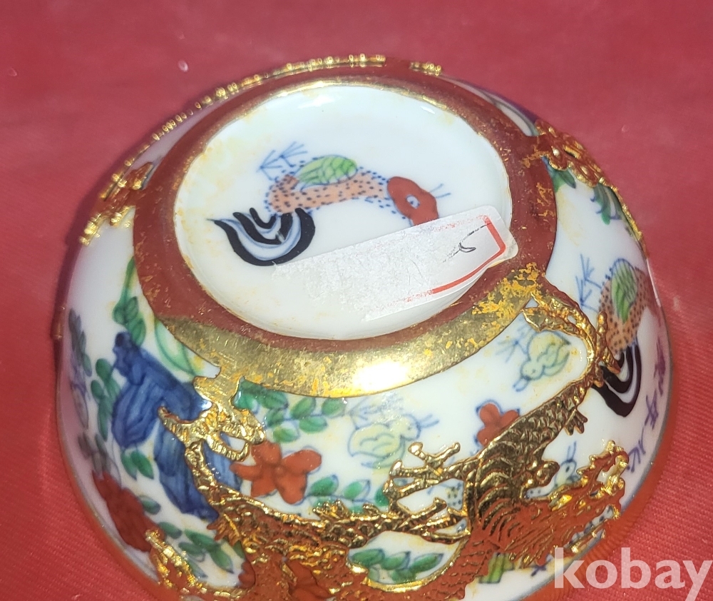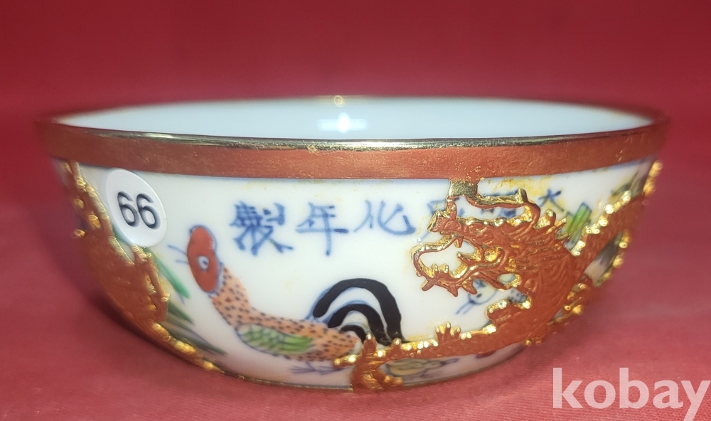 대명성화연제 관지 금채 쌍용 내부 닭문양 잔입니다,