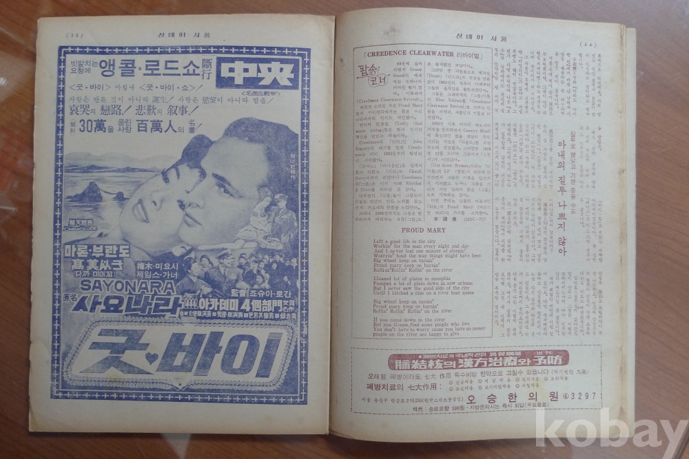 1969년 선데이서울 잡지 - 표지모델 미스 호남정유 -