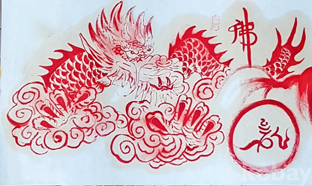 물품 크기 | 그림 크기; 135×34cm 화선지에 붉은경명주사로채색 |
