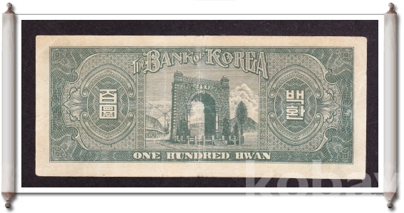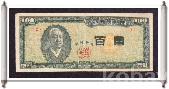 매우 귀한 한국은행 100환 황색지 기호 2번입니다.