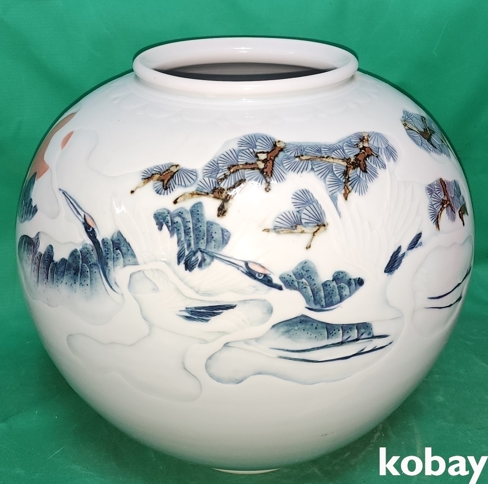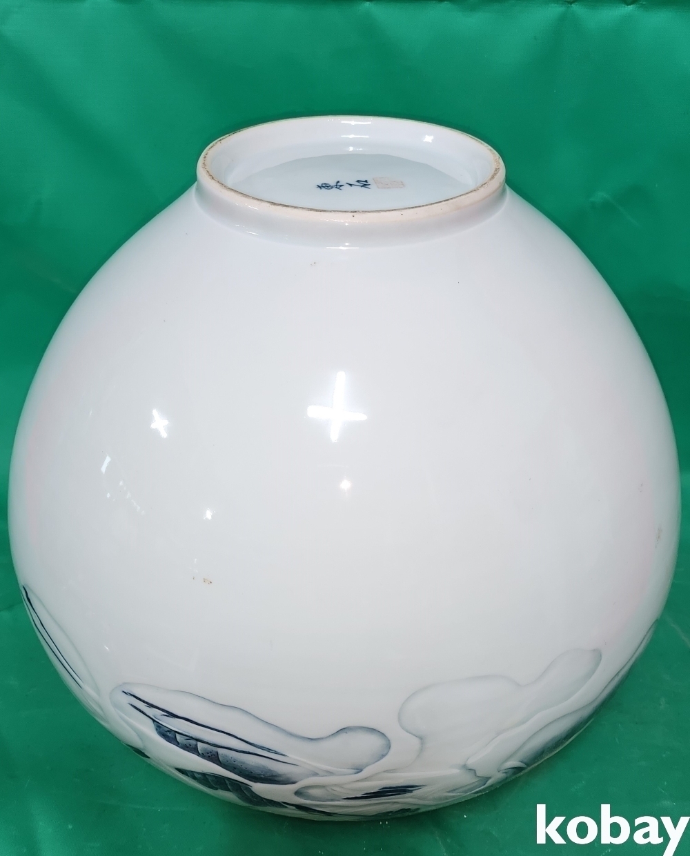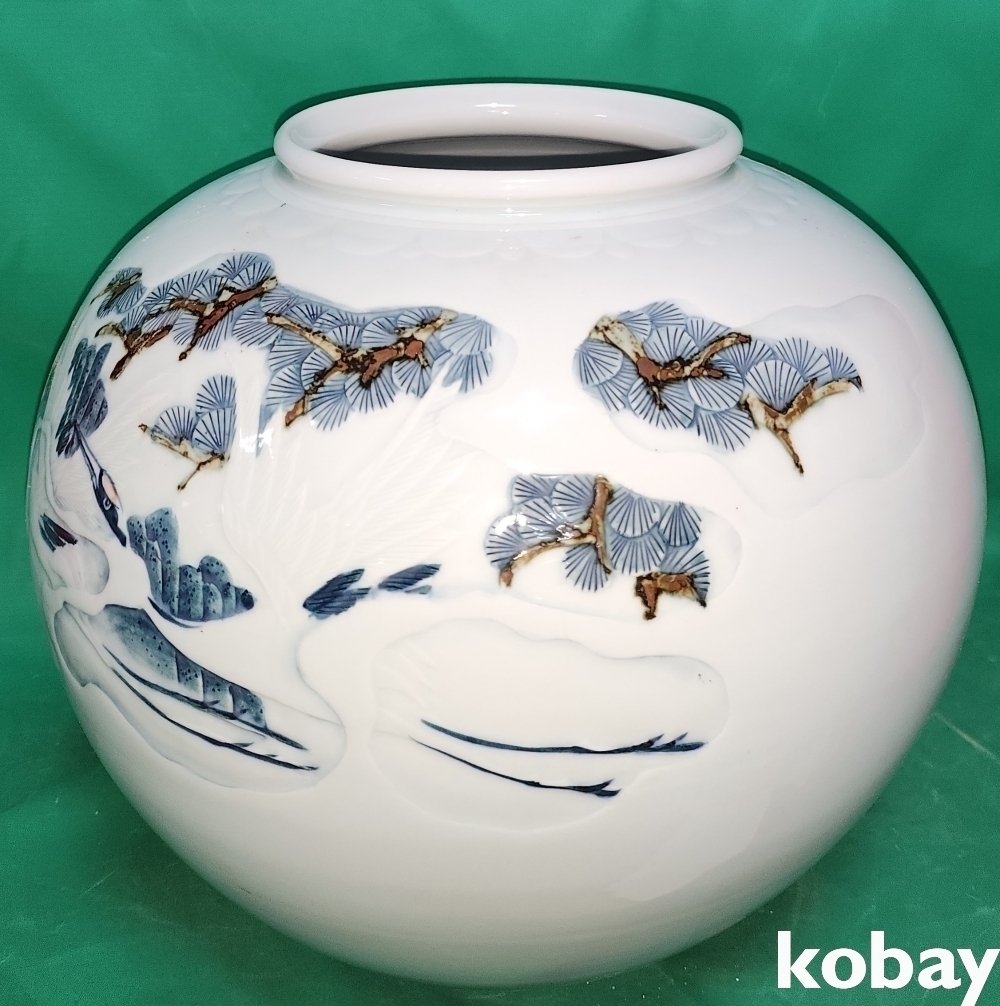 유명 도예가 동석(東石) 심상섭 선생 작 청화백자 송학문 항입니다,