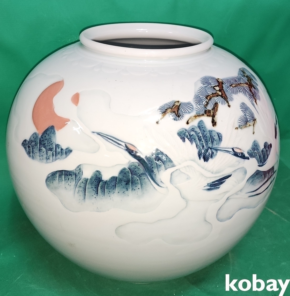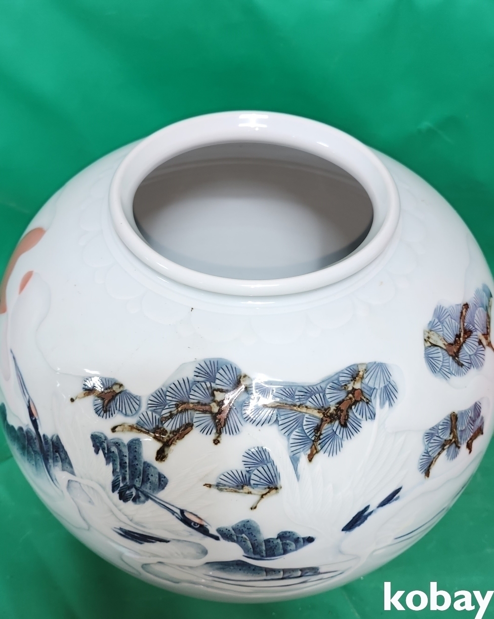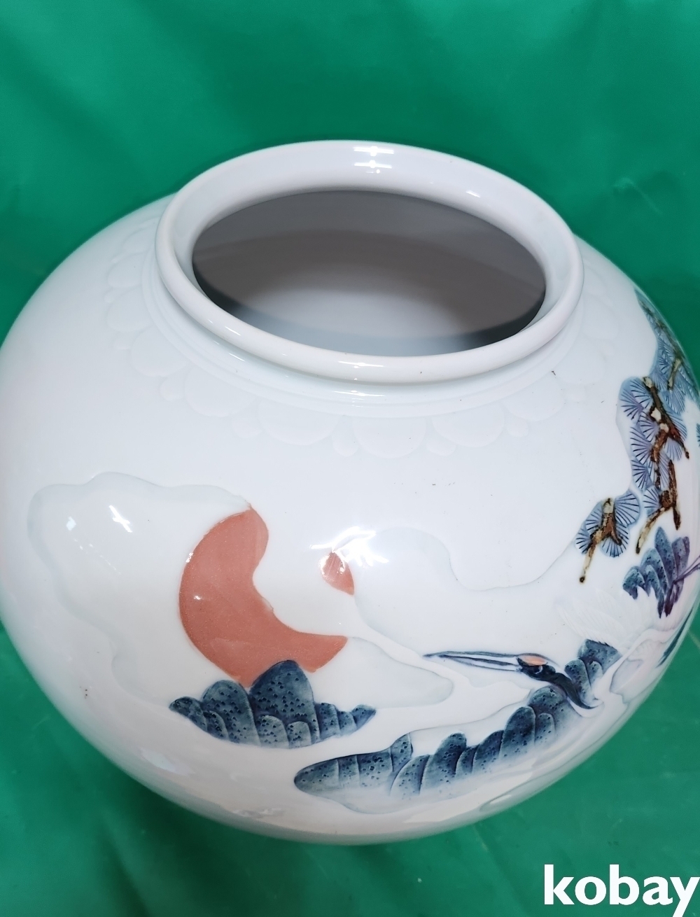 유명 도예가 동석(東石) 심상섭 선생 작 청화백자 송학문 항입니다,