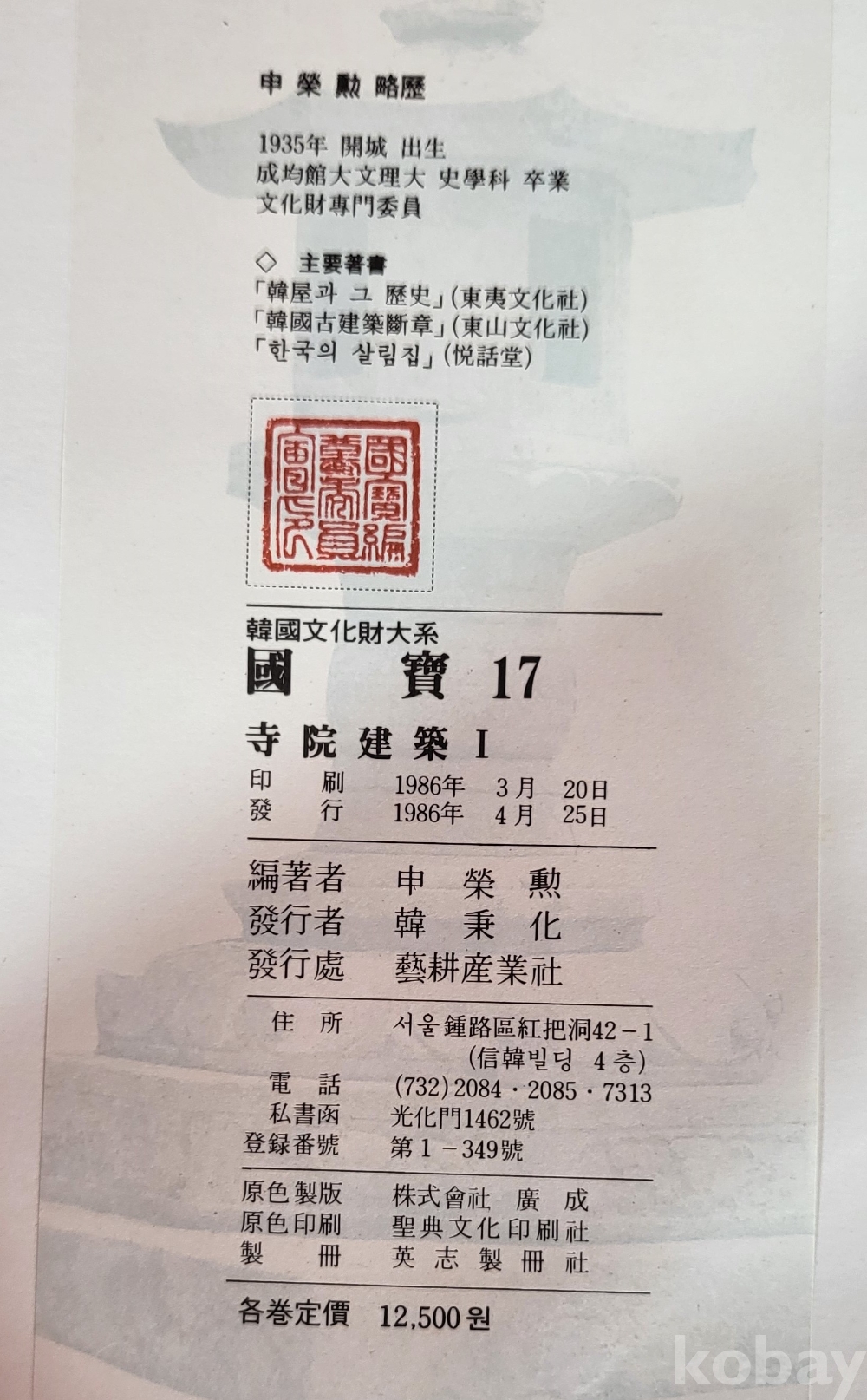 144 호 책장번 ///// 1986 발간된 국보 사원건축 컬러판 화보입니다,