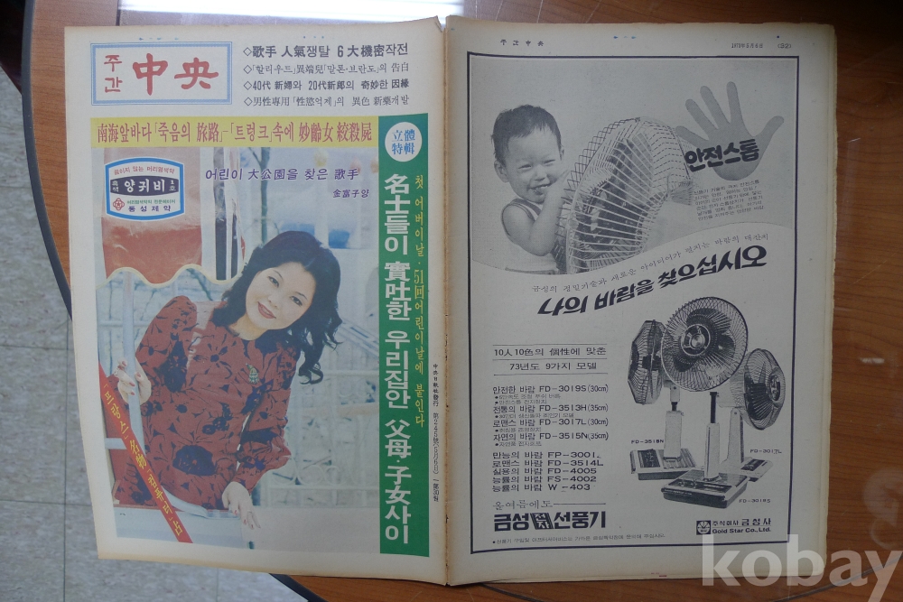 1973년 주간중앙 잡지 - 표지모델 가수 김부자 -