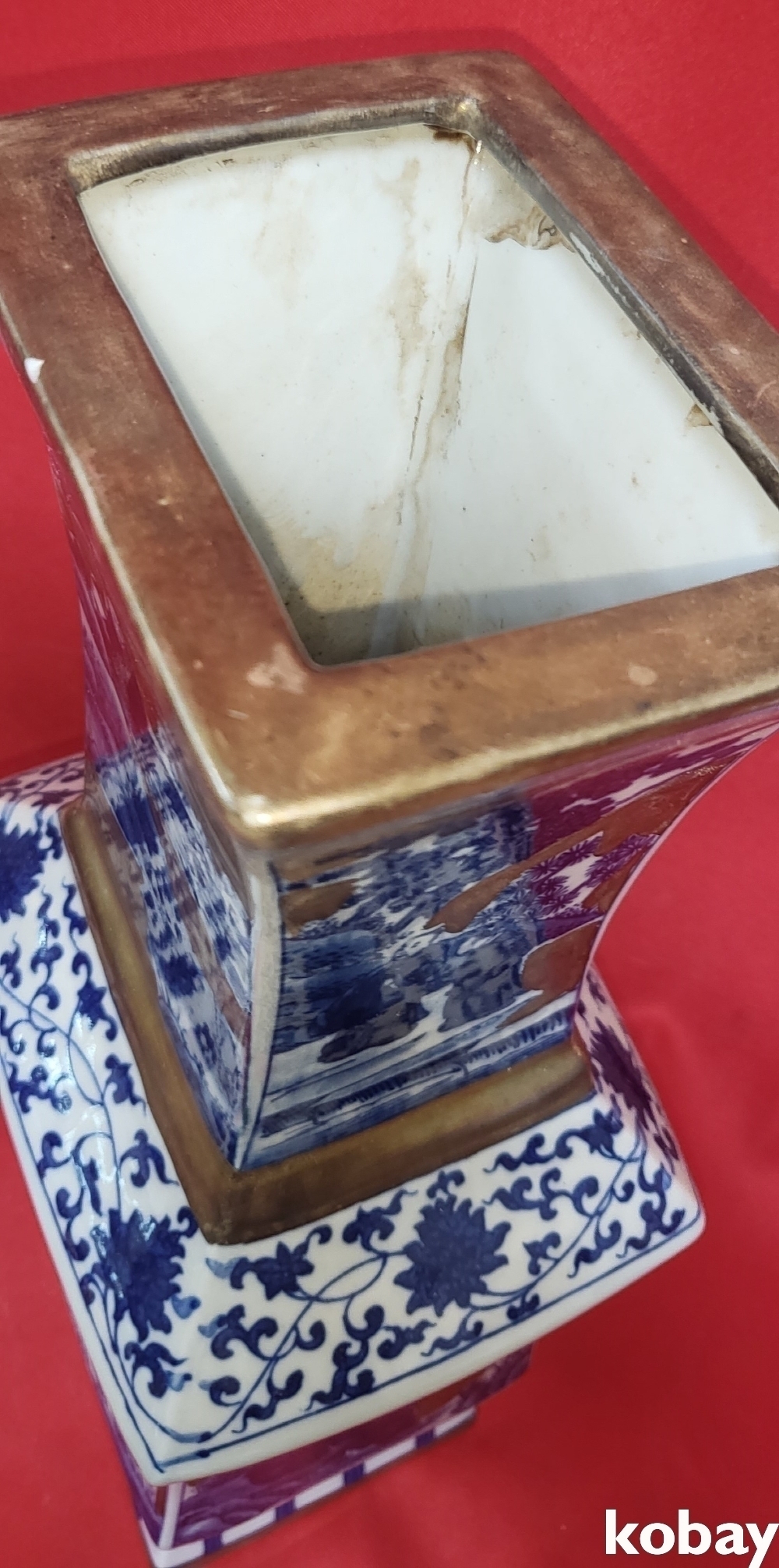 대청건륭 관지 코발트 청화 수림과 인물문양 사각병입니다,
