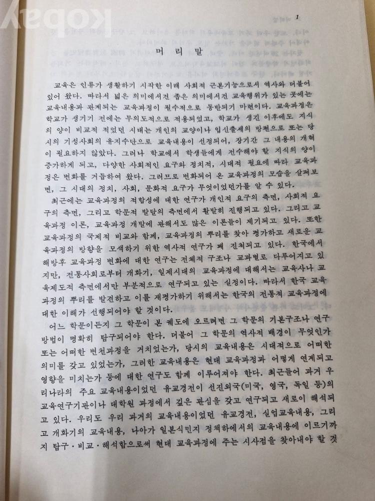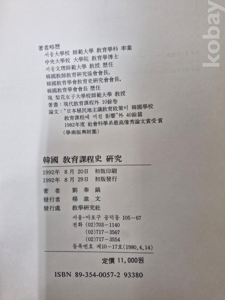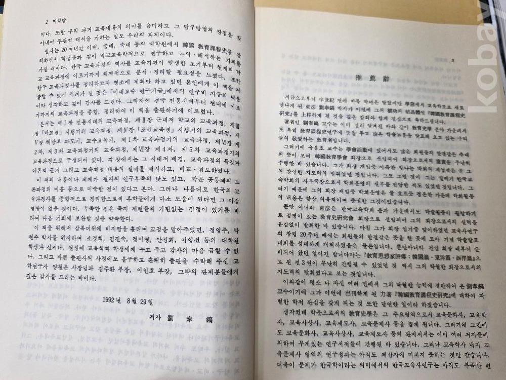 [한국교육과정사 연구] 유봉호 저, 발행처 교학연구사, 1992년 8월 초판발행, 정가 11,000원, 538쪽