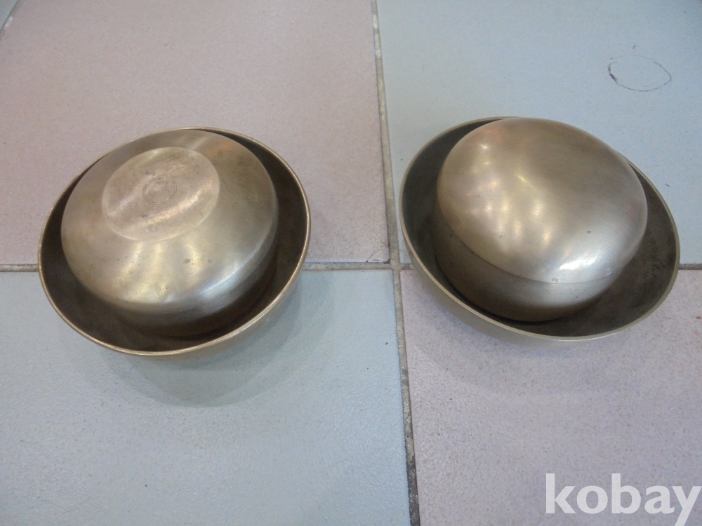 만든지 오래되여 질이들었으며 작아서 앙증스런 인간 유기공방문화재가만든 사용전시 소장에 좋은 문화재가만든 유기옥식기대접 2벌