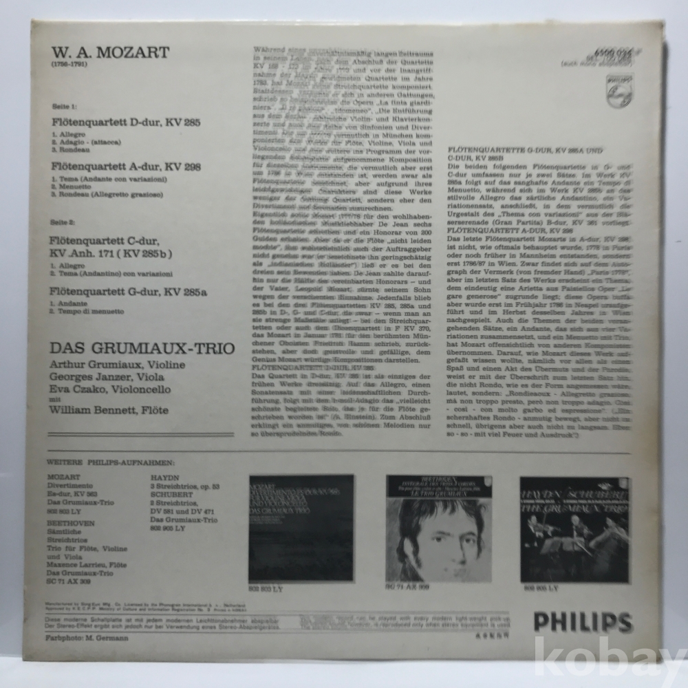 LP 34,910-14 Mozart Flotenquartett D-dur Kv.285 - Das Grumiaux Trio . ` 73 성음 자켓 EX+ 알판 EX+
