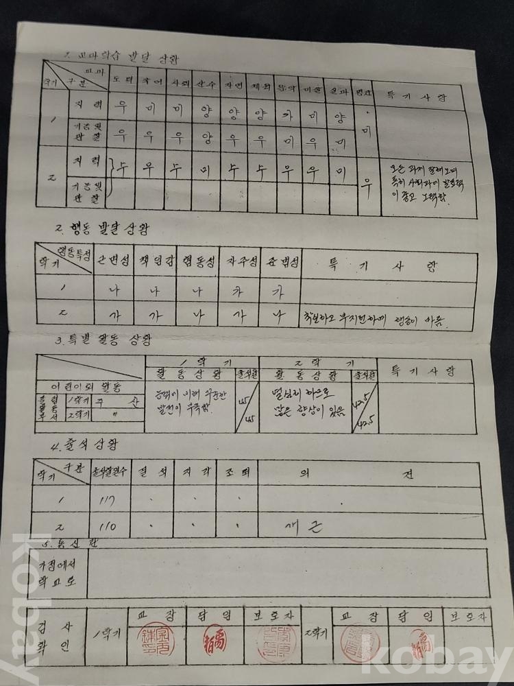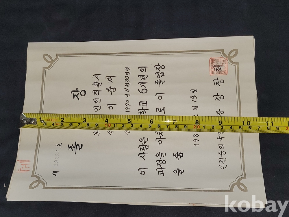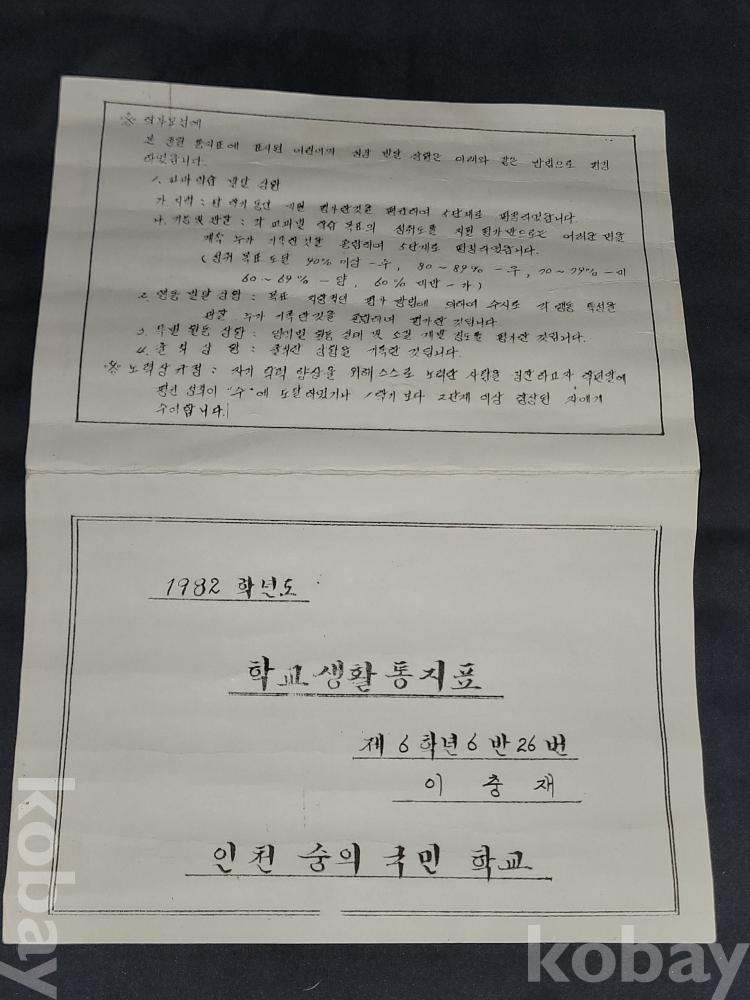빈티지 세월 감이 느껴지는 지관통과 80년대 인천숭의국민학교 관련 상장, 졸업장, 생활통지표 등 4장 일괄입니다.
