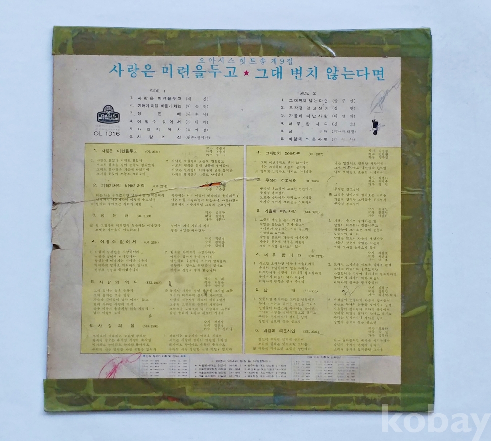 자켓상태 | VG : 주름, 접힘, 모서리 찢김 다수 | 음반상태 | VG : 생활 기스 다수, 가벼운 노이즈 존재 | 발매정보 | 알수없음 | 가사지여부 | 무 |