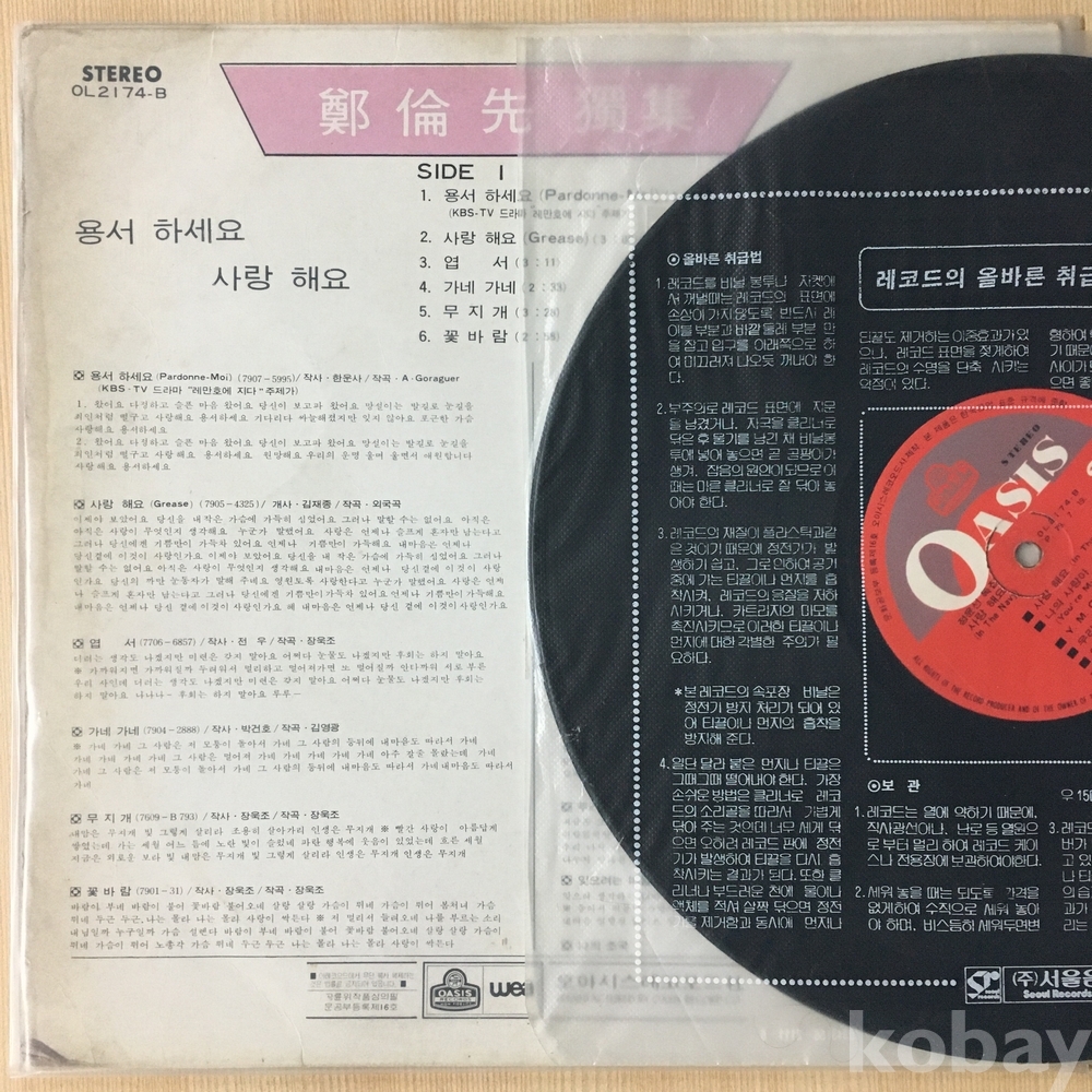 . 가요음반 대부분은 휘어짐이나 손상을 방지하기 위해 무지싱글자킷을 하나 더 사용하여 보관되었던 음반들입니다.