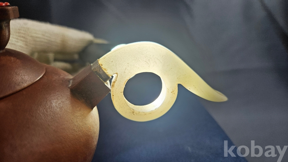 뚜껑 손잡이는 여의 형태로 조각이 되어있으며