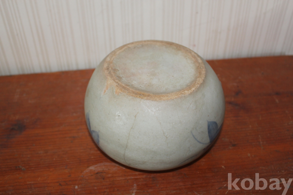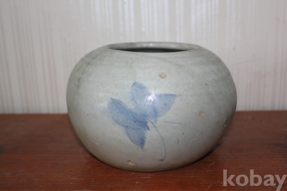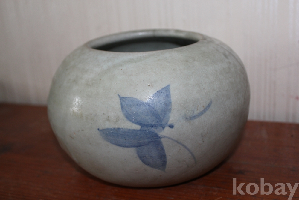 동체에 맑은 청화로 3마리의 나비가 시문된