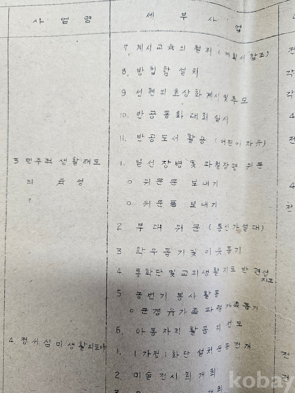 -방첨함 설치, 반공동화대회등 반공교육이 계회되어 있음