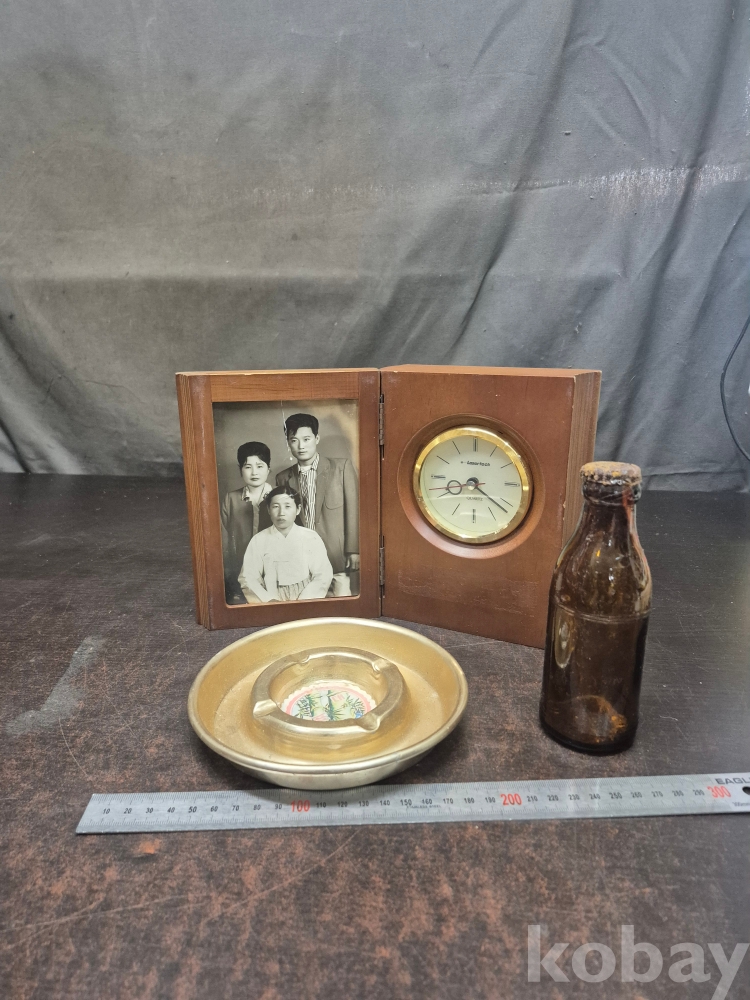 1970-80년 원목 시계 액자 알루미늄 재떨이 삼성 가스일괄 14*18*6