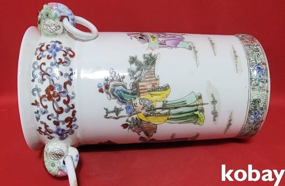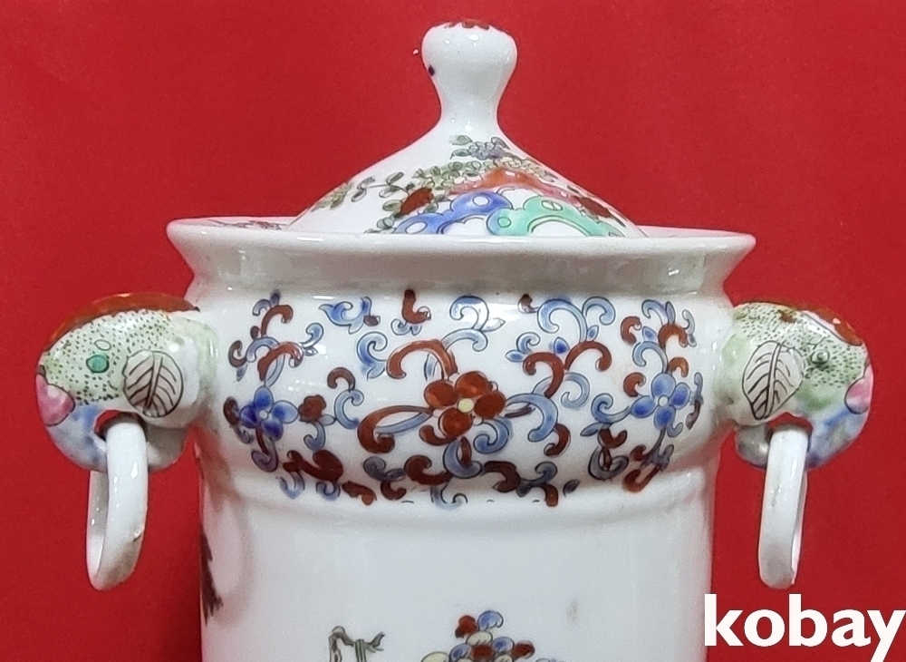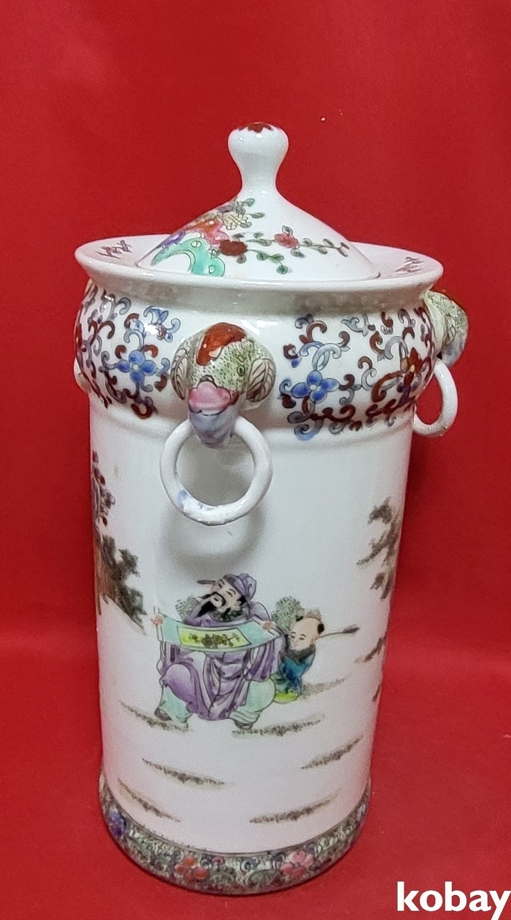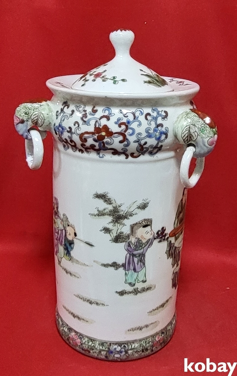 대청건륭 관지 분채 잉꼬 영락 동자 인물문양 유개병입니다,