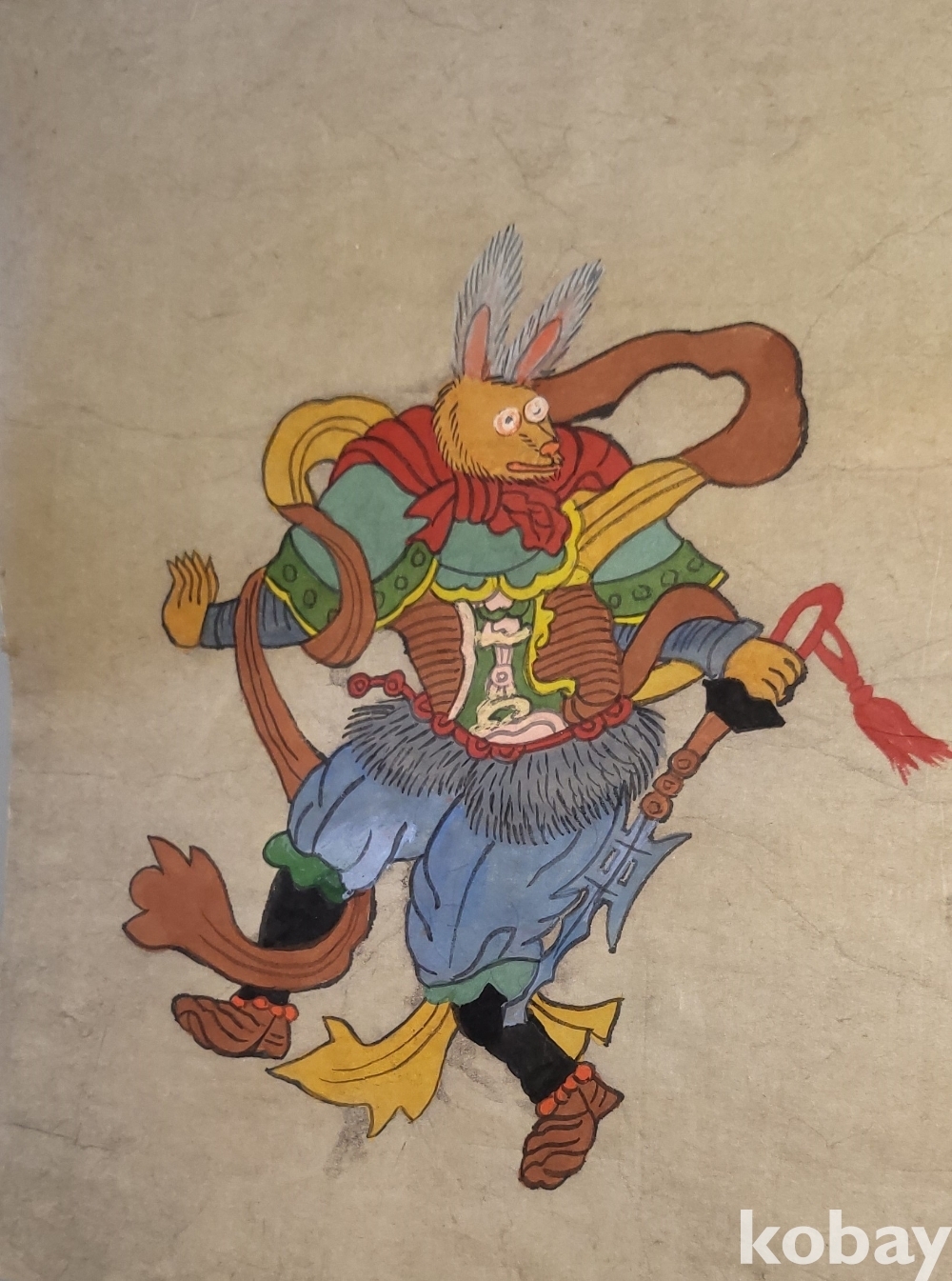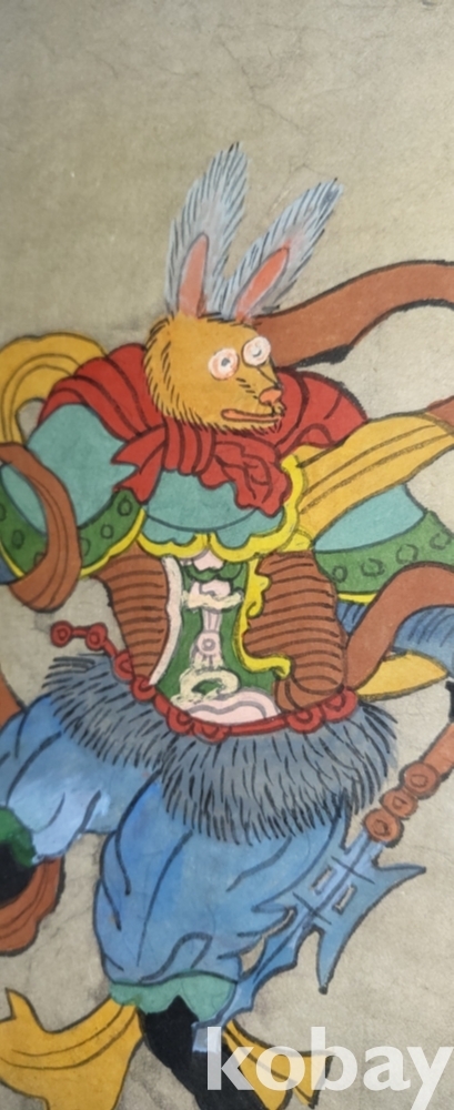 구한말 연대 갖춘 장지 바닥에 당채로 그려진 동물 형상 그림입니다,