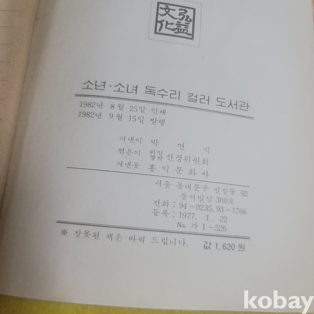 (((근현대사자료))) 컬러판 소년소녀 독수리 도서관 - 고전명작편 (동물기) (1982년 발행)