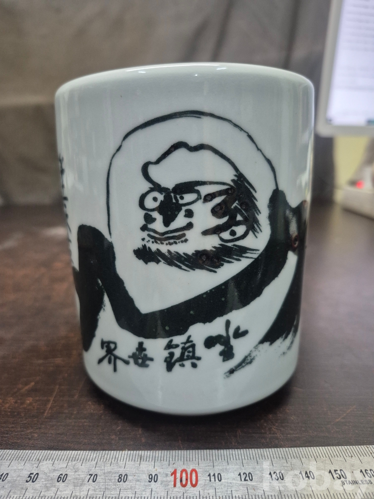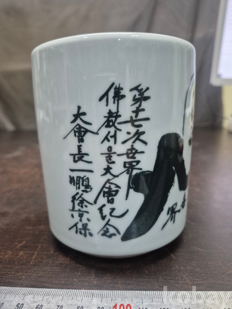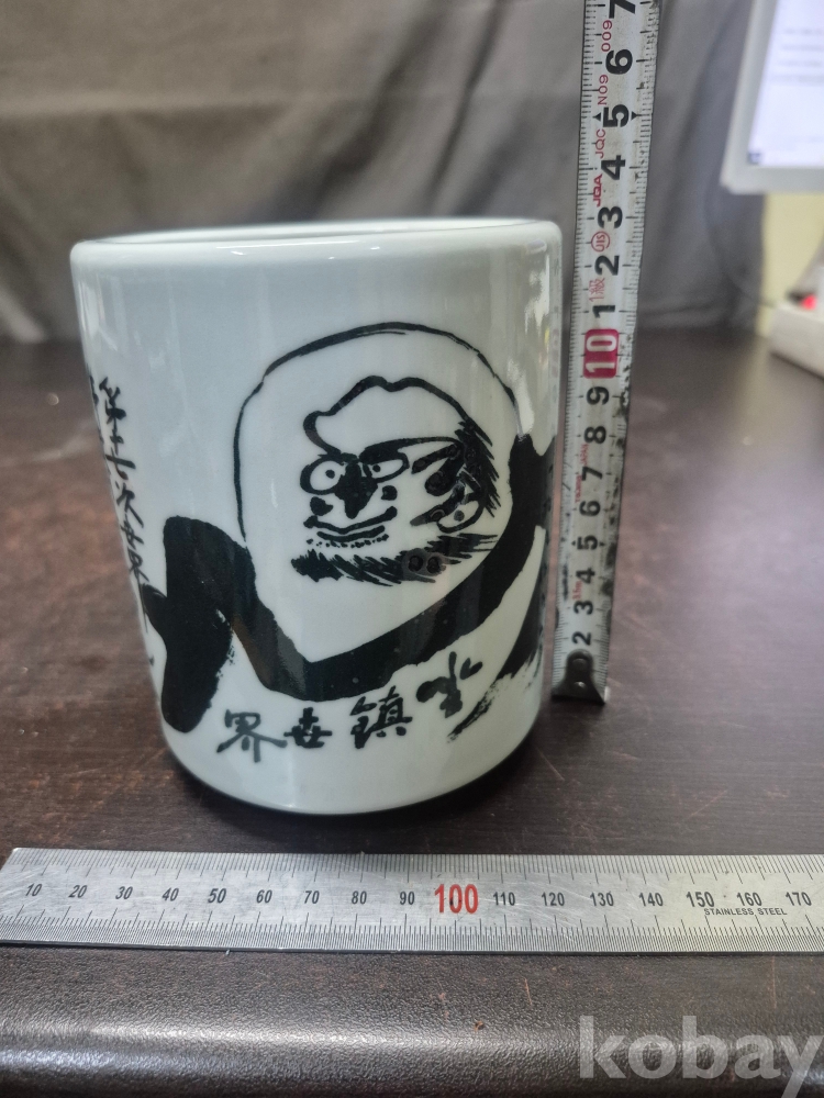 제 17차 세계 불교 서울 대회 기념 대회장 서경보 스님 달마그림 연필통 붓통 도자기 11*11*13