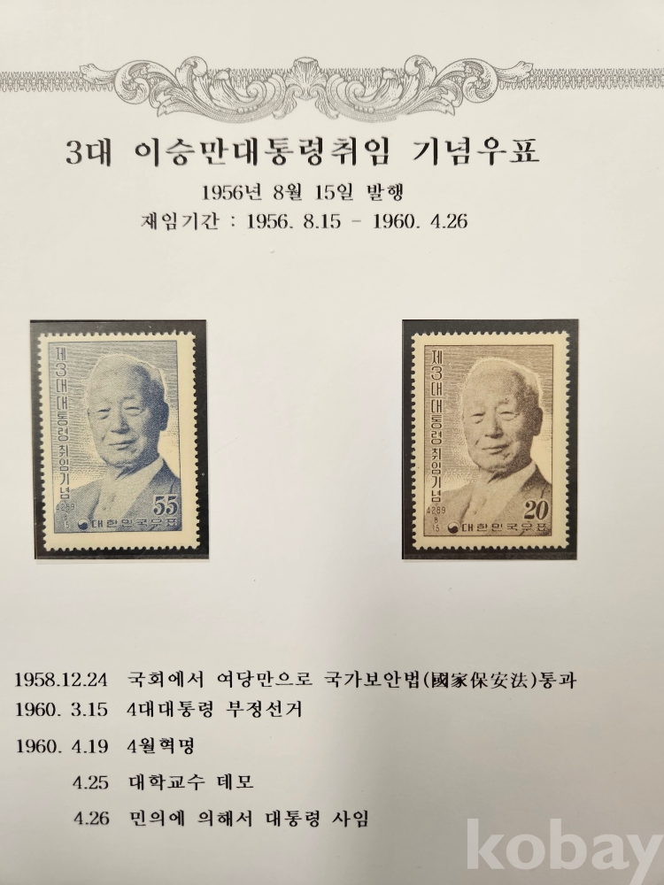 귀한 역대 대통령 취임기념 우표첩 올립니다, 거기에 초대대통령 취임기념은 에러우표 이기에 얼마나 가치가