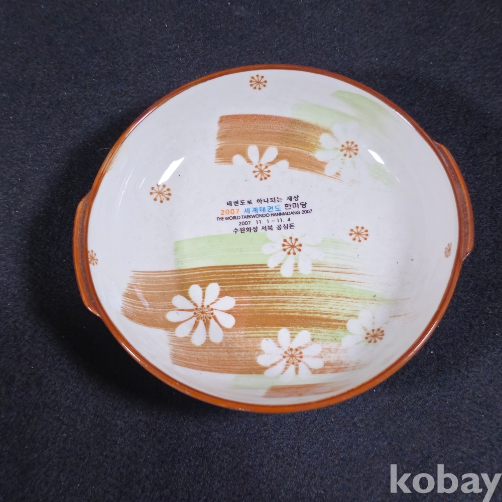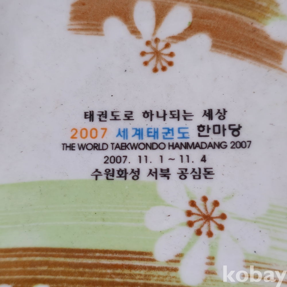(((근현대사자료/태권도자료))) 태권도로 하나되는세상 - 2007 세계태권도 한마당 기념 도자기 접시 (수원 화성 서북 공심돈)