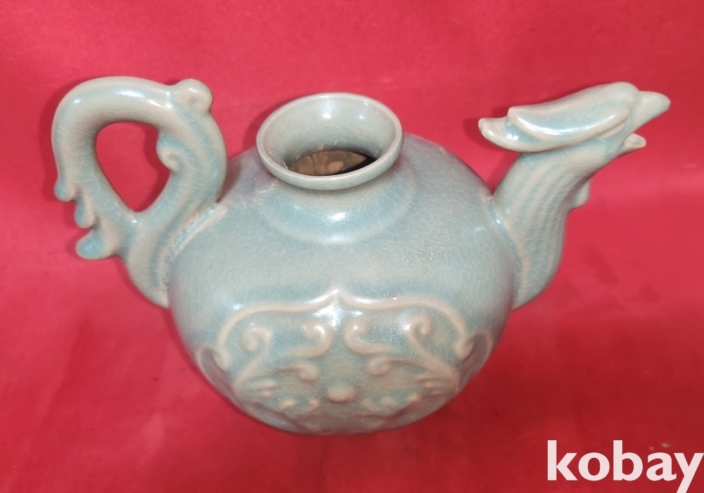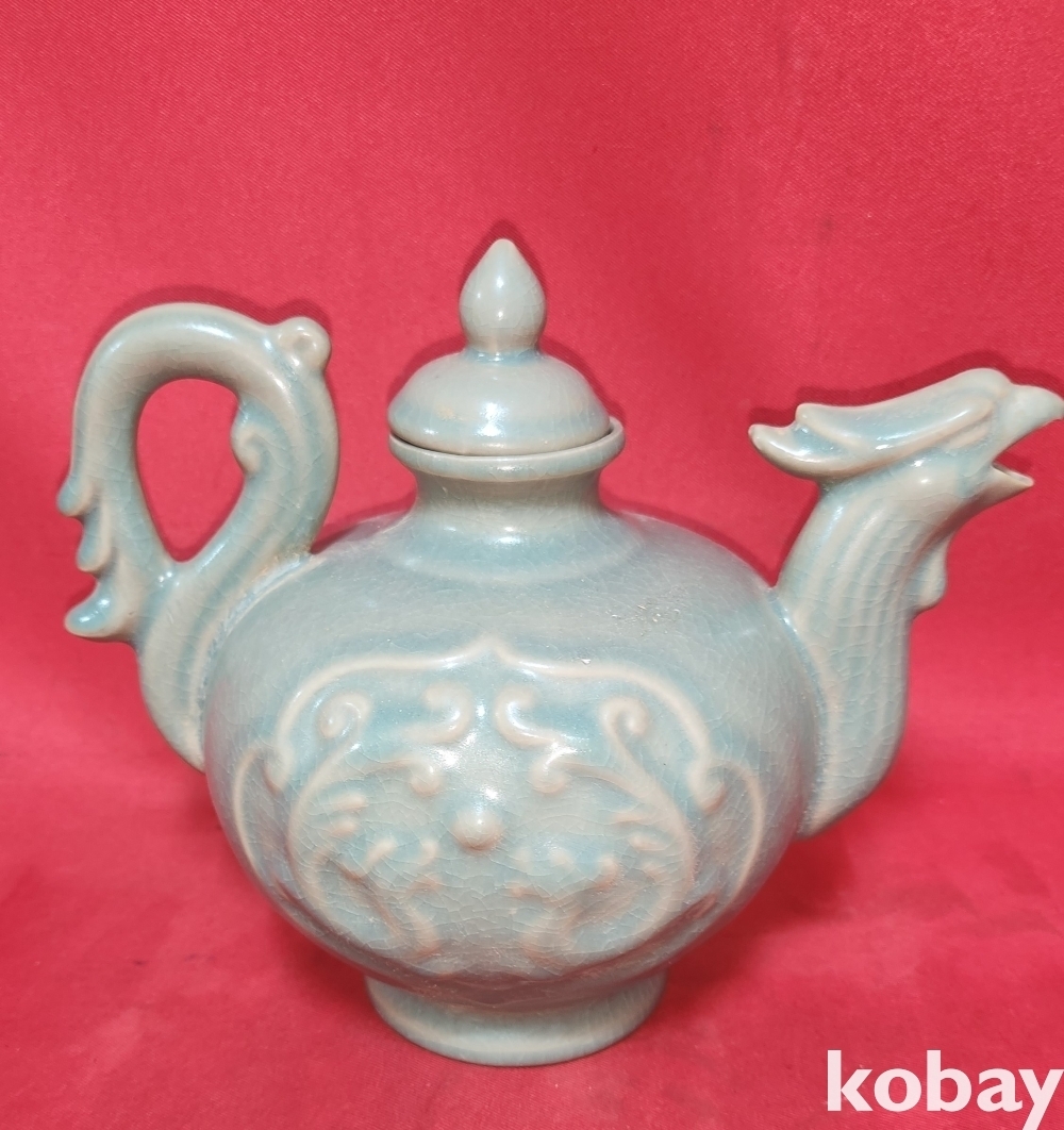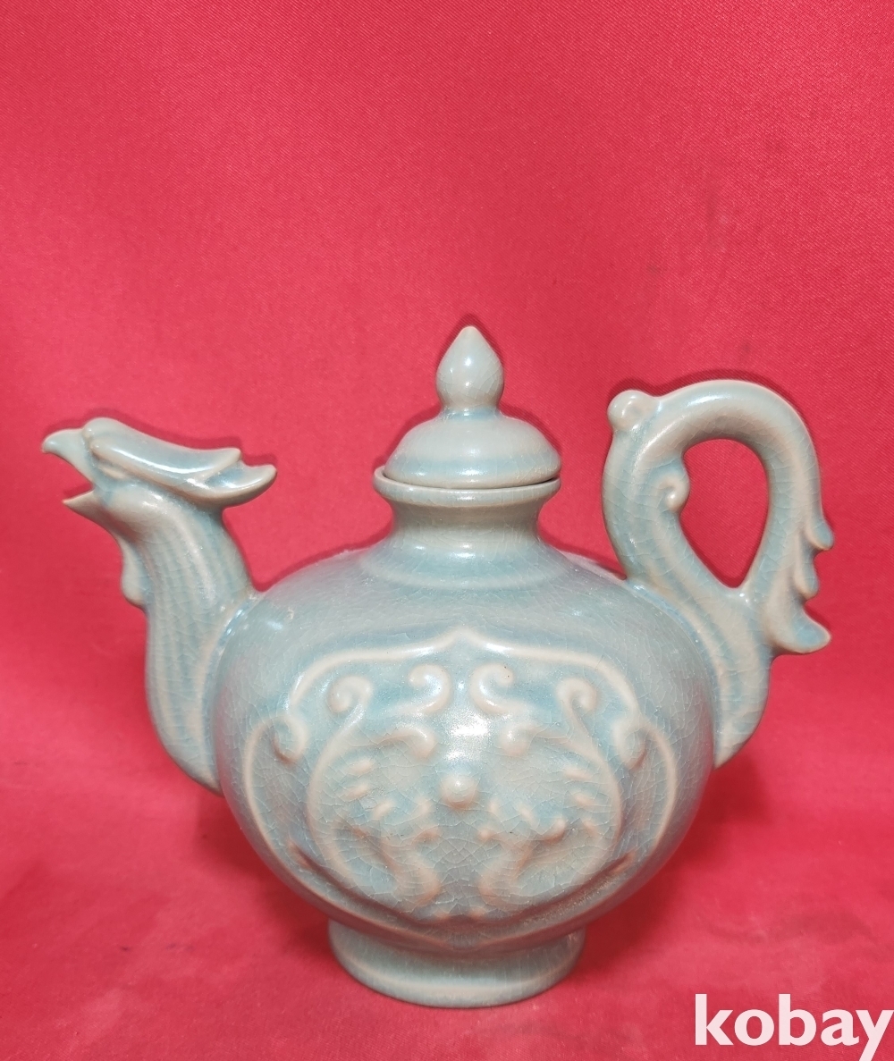 비색청자 양면에 용과봉화 문양 주전자입니다