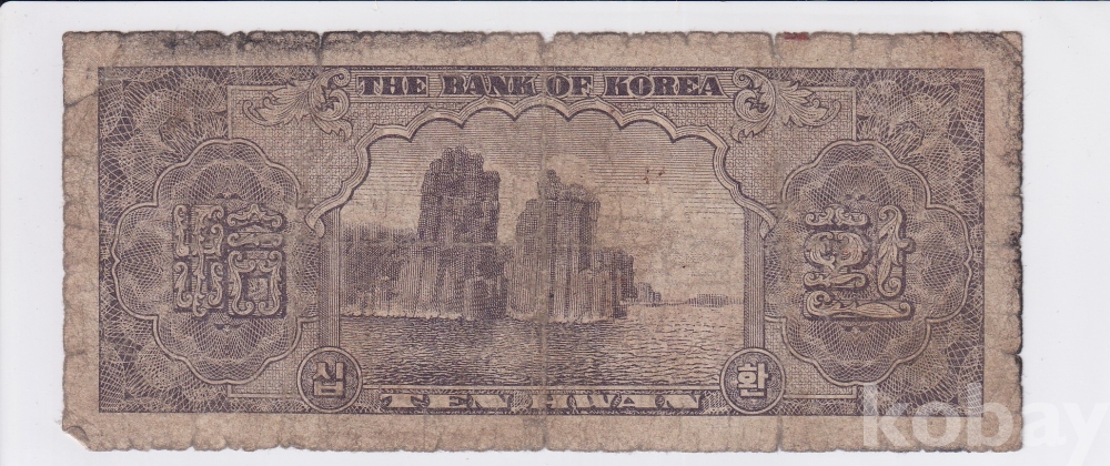 - 한국은행 1956 신 10환 백색지 사용제 지폐 입니다.