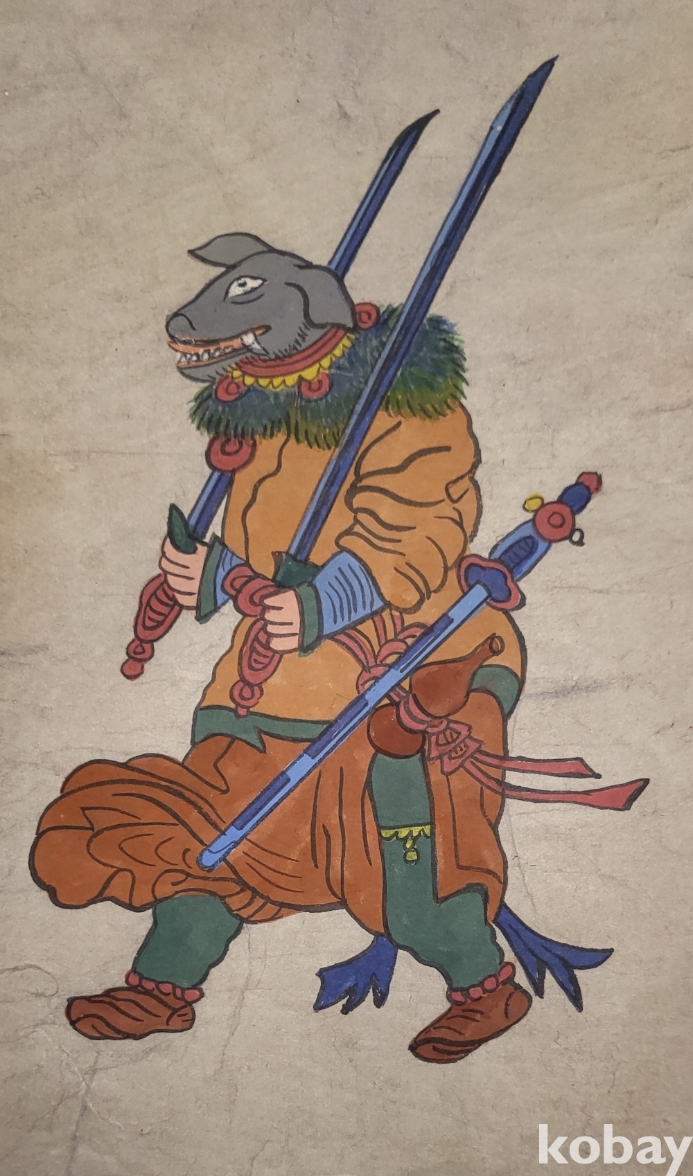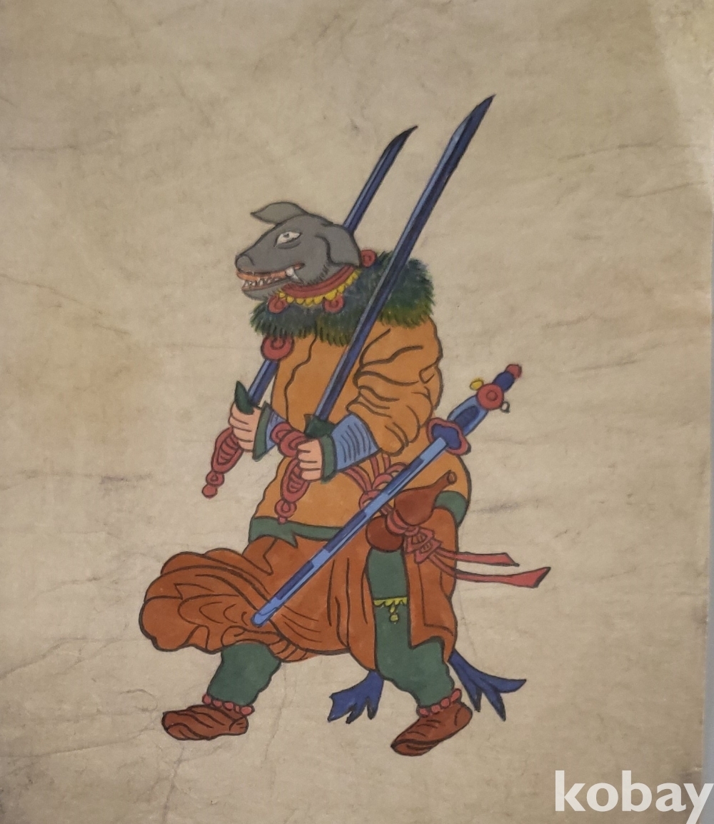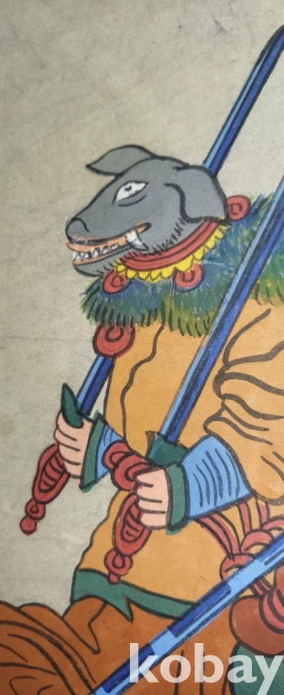 구한말 연대 갖춘 장지 바닥에 당채로 그려진 동물 형상 그림입니다,