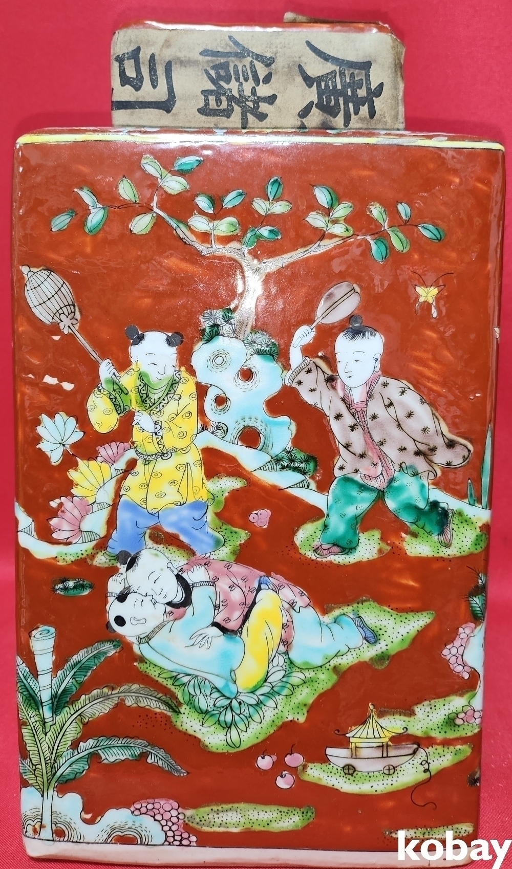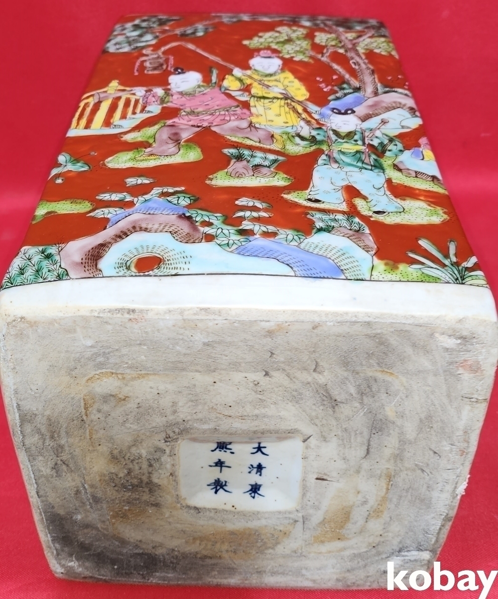대청강희연제 홍지 분채 동자문 사각 미개봉 보이차가 들어있는 사각병입니다,