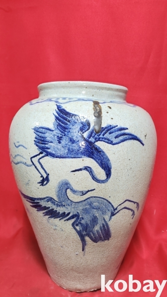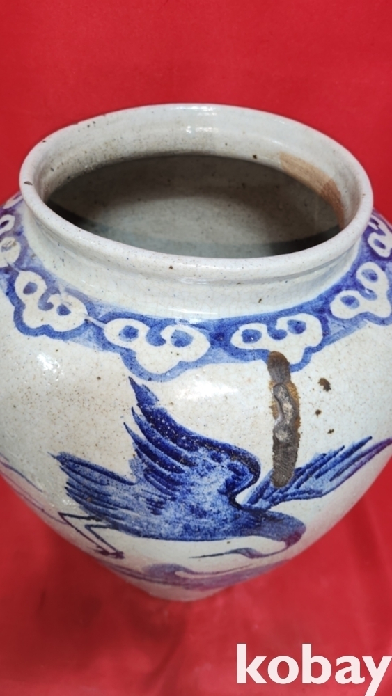짱짱한 연대를 간직한 청화백자 고목과 쌍사슴 쌍학과 시(詩)문양 큰 도자기입니다
