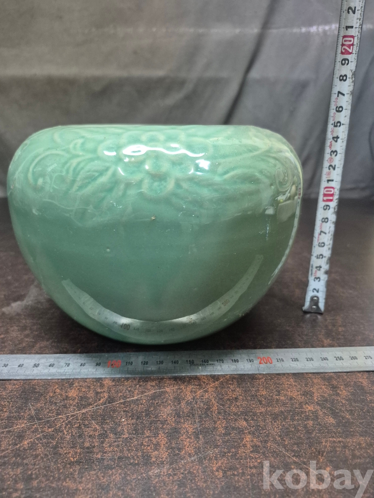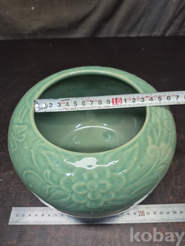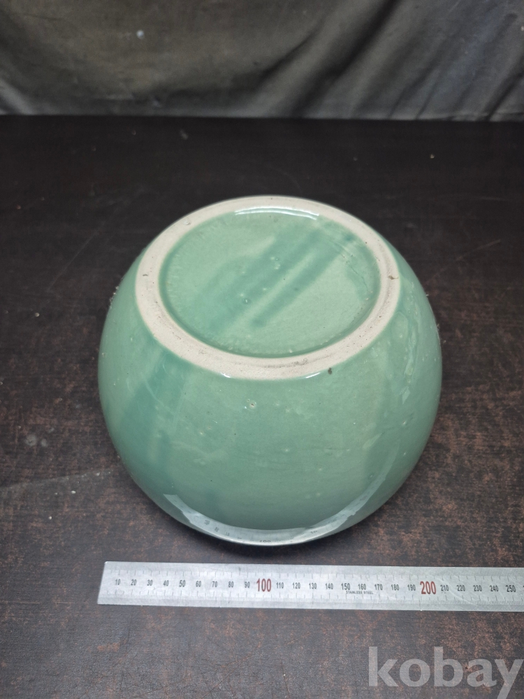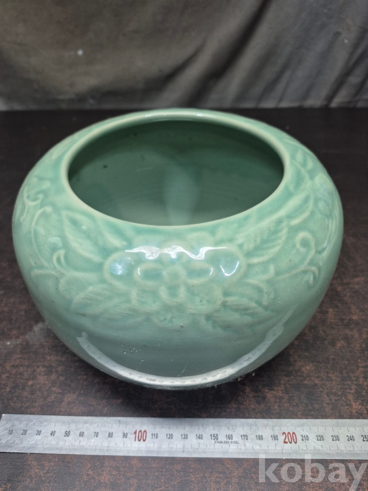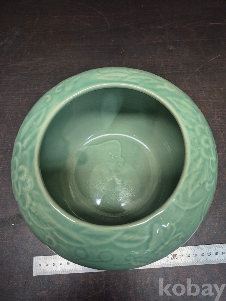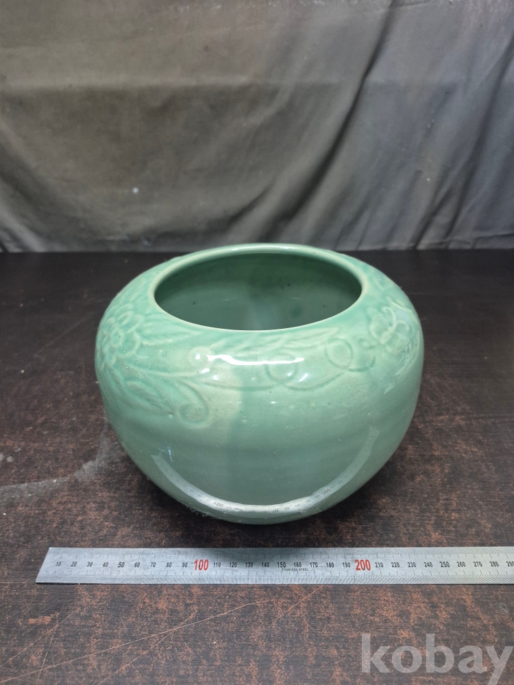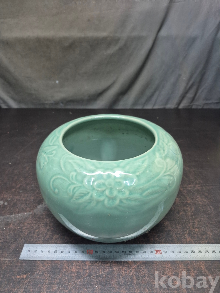 나비와 국화 문양이 들어간 청자 도자기 22*22*15