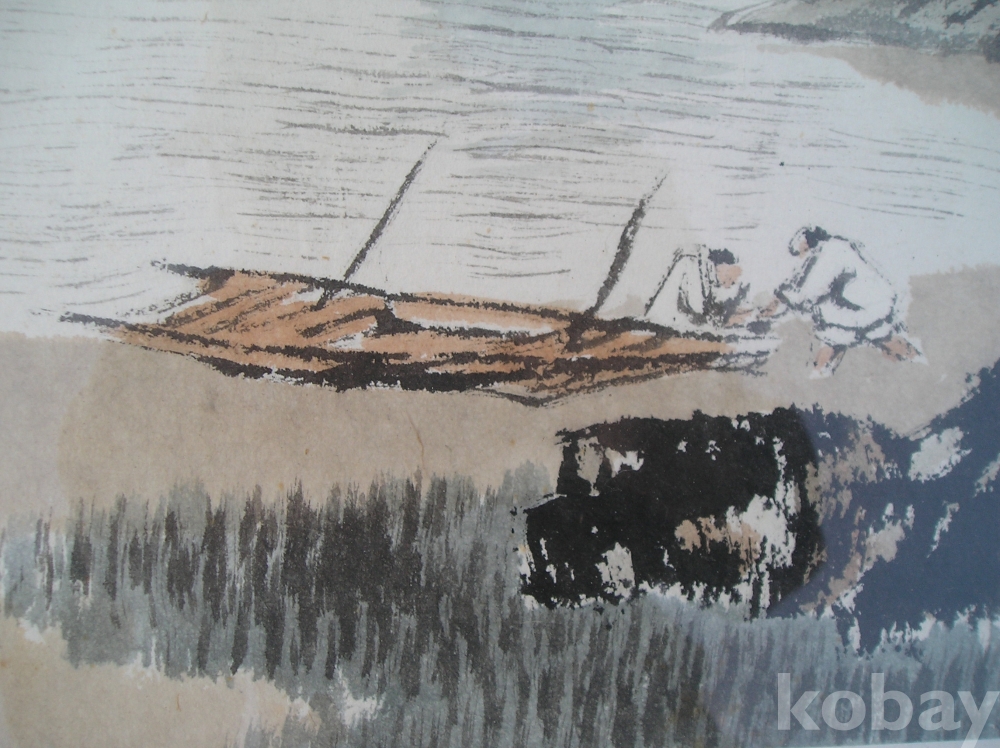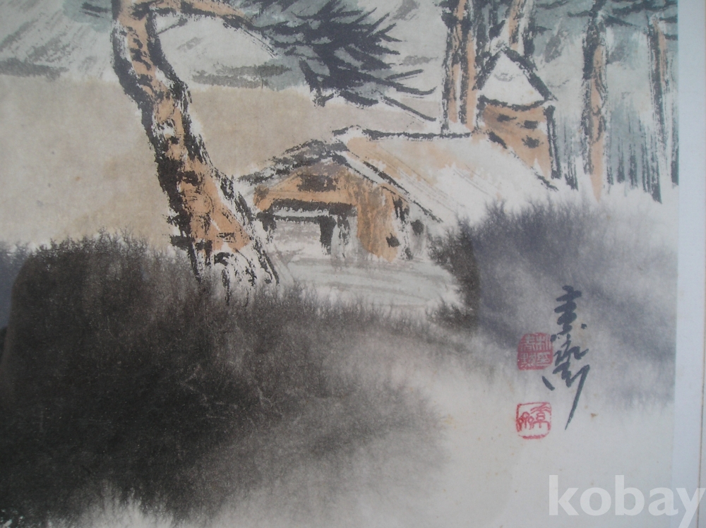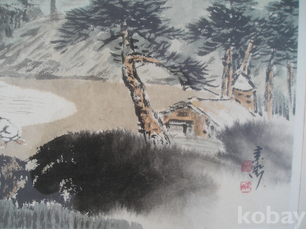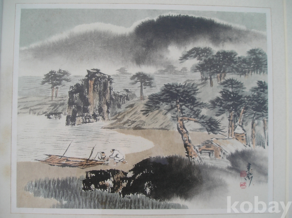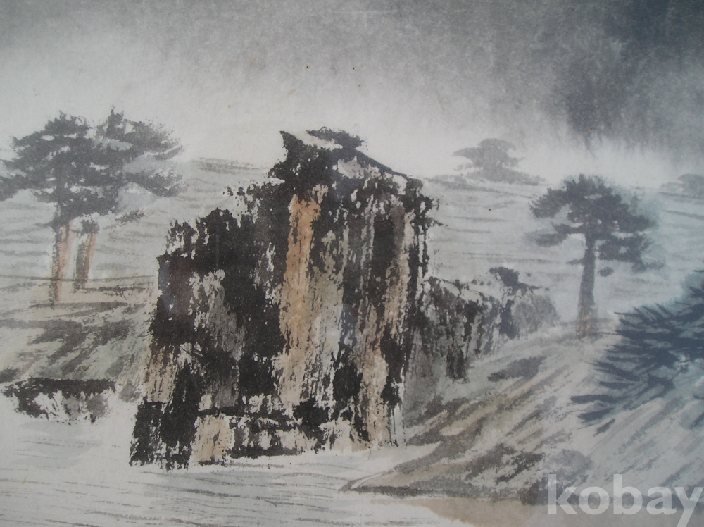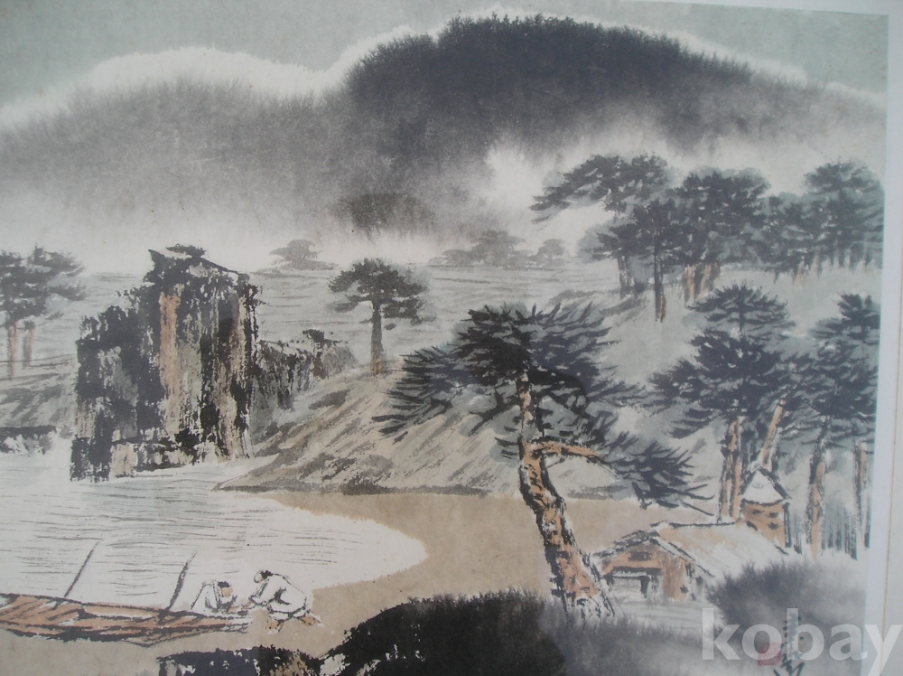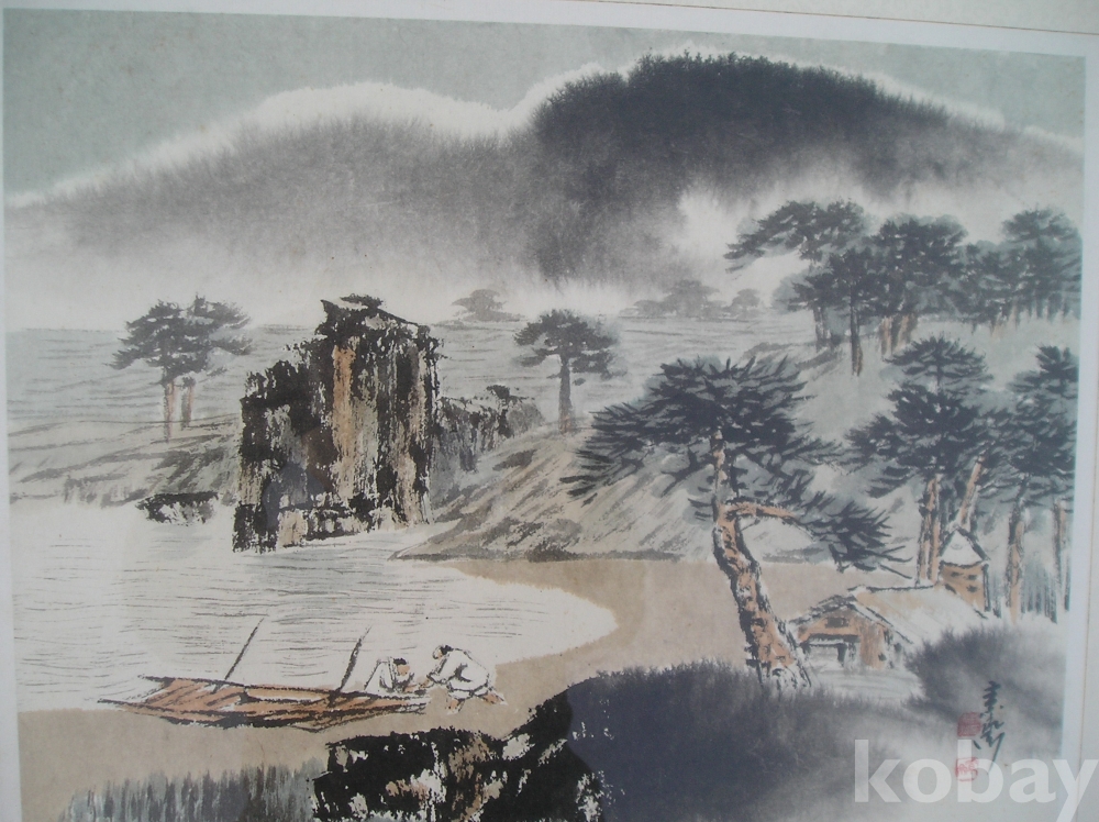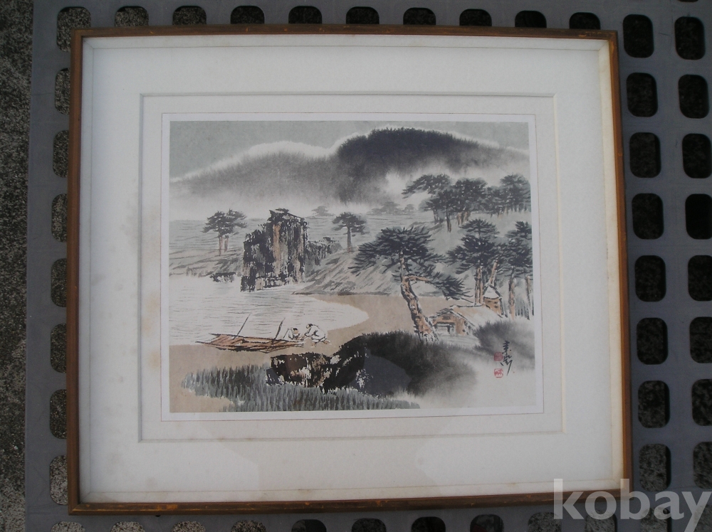 A-31, 한국화, 해변풍경, 작가: 소재 박춘묵, 액자:가로x세로:68x59,그림:43x36 Cm.