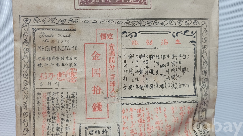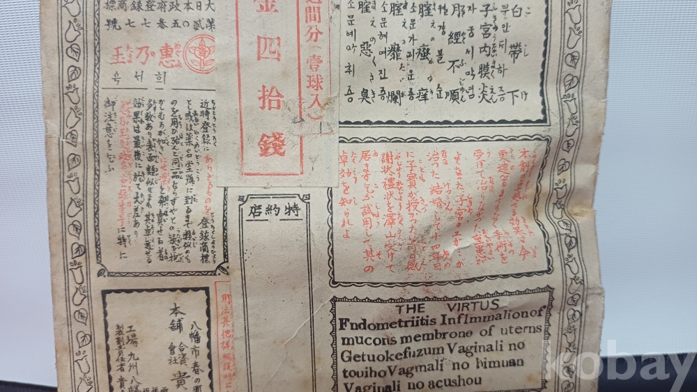 일제강점기 귀명당에서 생산및 판매된 부인병 치료제 혜내옥 입니다