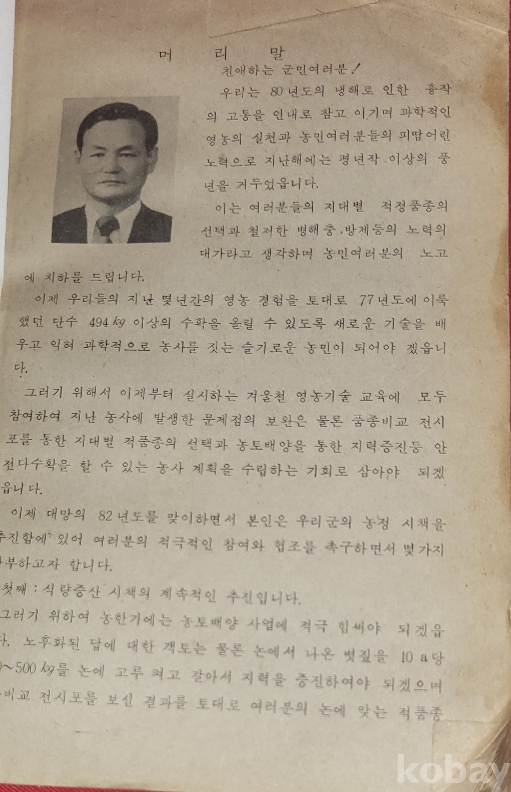 1982년 발간된 겨울영농 기술교본 벼농사편입니다,