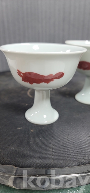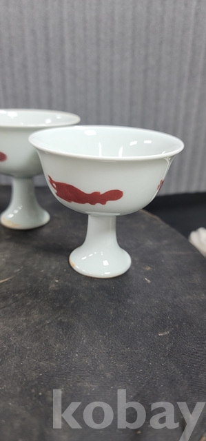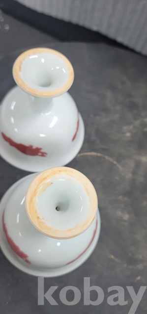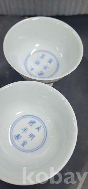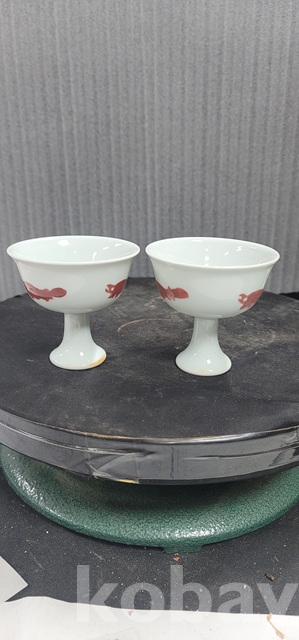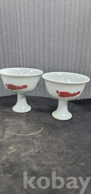 b-103.대청선덕년제 물고기문 백자 마상배 한쌍